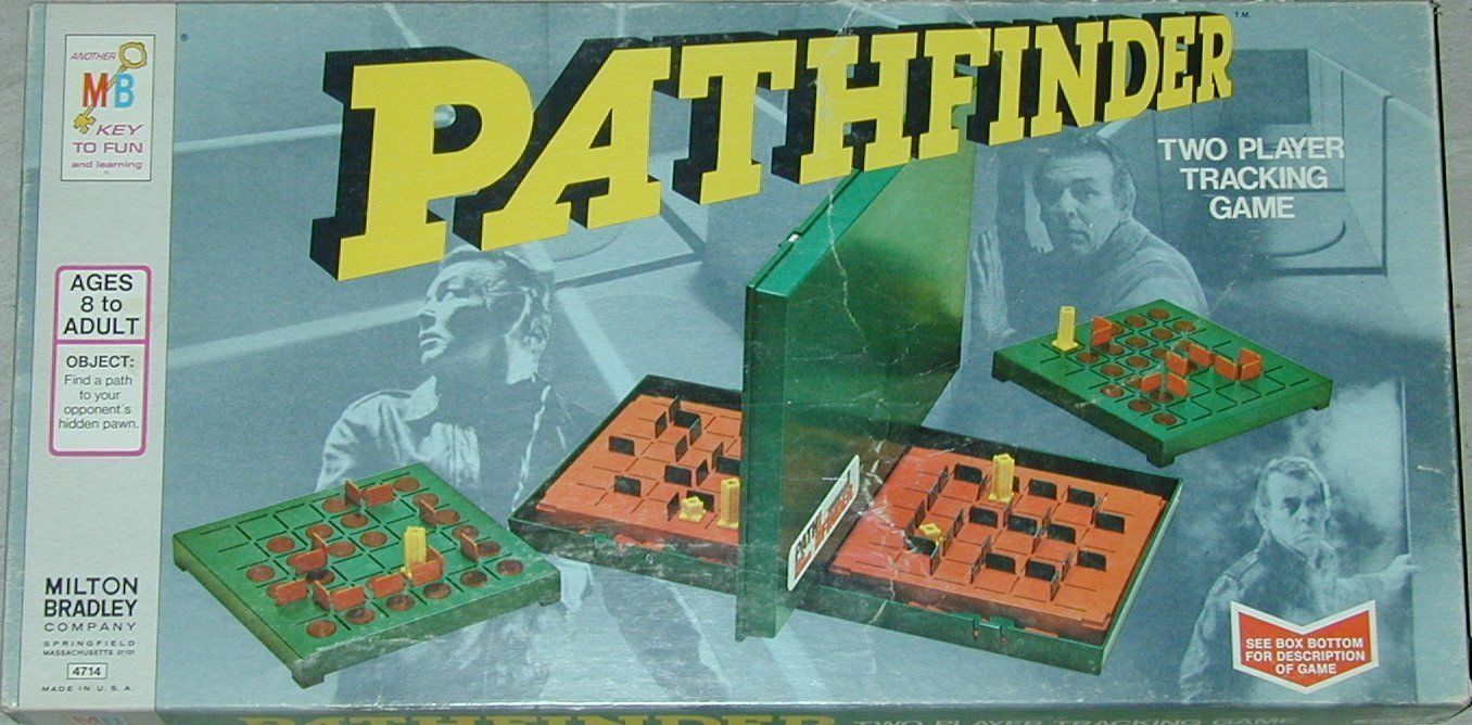 During set up, each player has a hidden board on which they set up, not a set of ships, but a maze with small rectangular plastic walls. They place a sitting man figure somewhere in the maze.