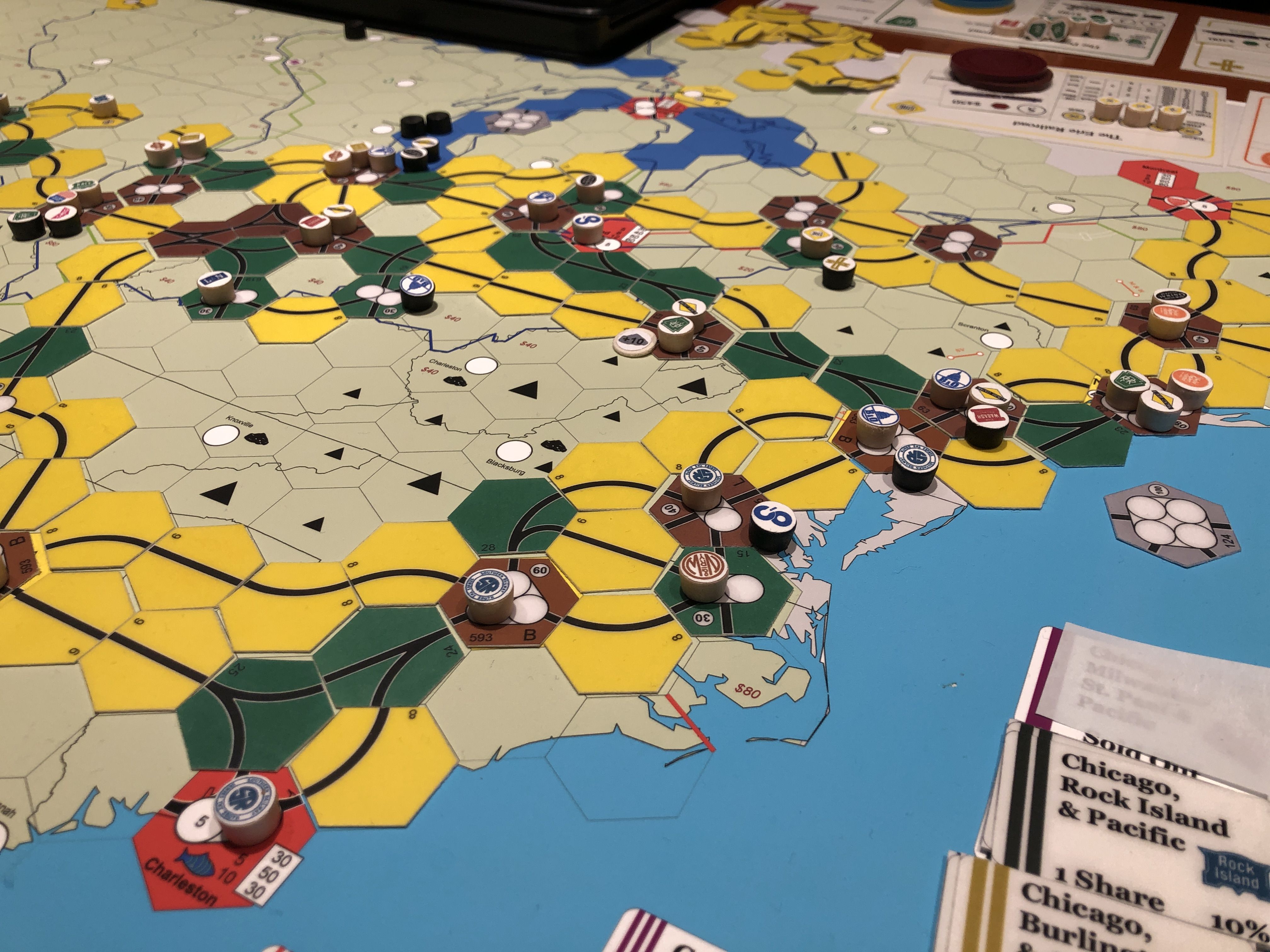 Descrizione: Vast self published 18xx game covering mainland USA. 32 corporations and 18 private companies. Takes well over 6 hours to play (designer claims 10 hours).