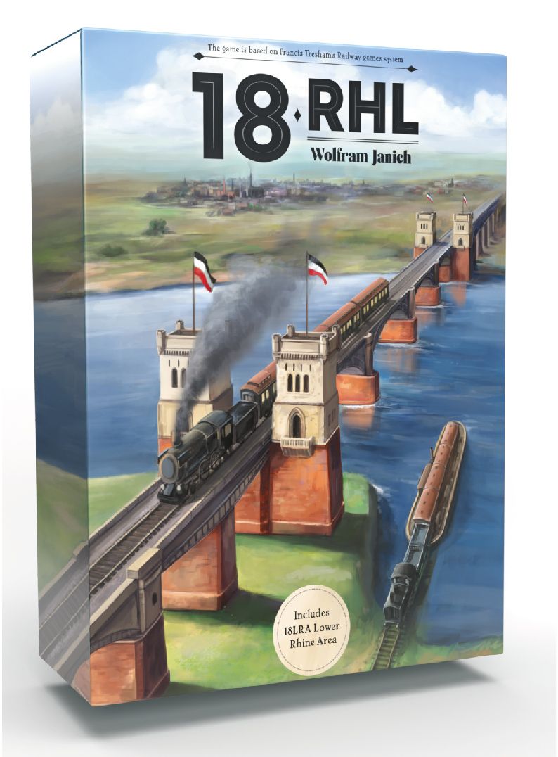Descrizione: 18Rhl-Rhineland is an 18xx railway game for 3 to 6 players. The concept is based on 1829 by Francis Tresham. The special features of 18Rhl-Rhineland are the bonus routes between steel mills and coal mines, the crossing of the river Rhine and the Rhinegold-Express. The latter achieves a very high income if it travels all the way from the Netherlands to Frankfurt or Basel.