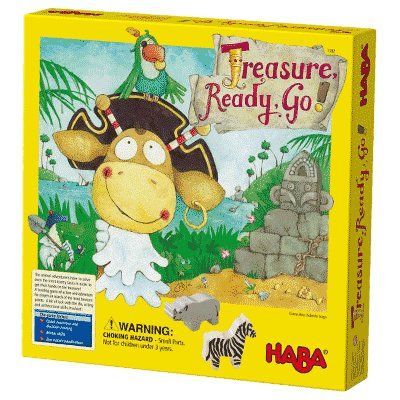 Descrizione: The object of the game is to obtain the most treasures. Treasures are awarded by completing tasks. Each turn the player turns over the hour glass, then turns over the first treasure card. Depending on the card, various tasks must be performed before the time runs out; pantomiming animals, matching cards, grabbing for specific animals...