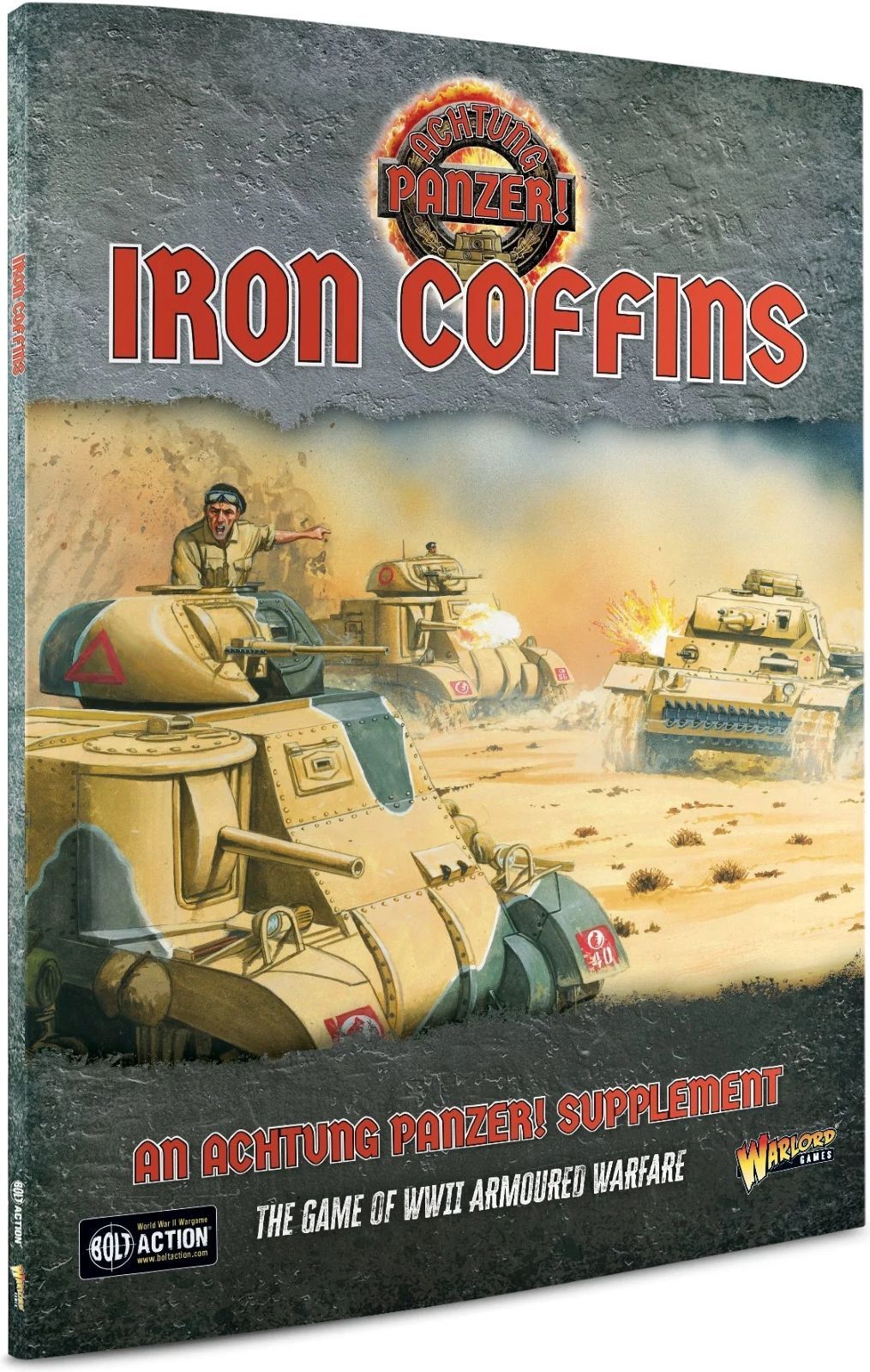Packed with special rules, missions, and lots of tank statistics, Iron Coffins is an essential addition to your gaming library. Designed to expand and build upon the core rulebook, this tome contains everything you need to take your armoured warfare to the next level. From expanded campaign rules, new historical scenarios, and tank aces, to over a hundred new asset and event cards and guidance on taking Achtung Panzer! into every theatre of World War II, this book has something for everyone.