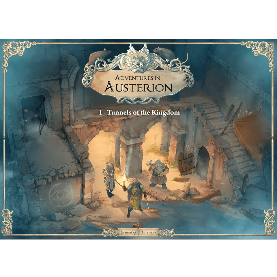 Descrizione: Adventures in Austerion (AiA) is a fantasy role-playing game (RPG). Mainly designed to explore unfriendly locations in the continent of Austerion, it may be played in fast-paced sessions of 2 or 3 hours. To do so, it relies on a mix of classical RPG rules and boardgame mechanisms (such as tiles, cards and tokens…). If this approach will help new players to discover RPGs in a comforting and amusing way, it will fulfill the grognards as well, with additional possibilities offered by a set of optional rules that convey an old-school dungeon-crawling feeling.