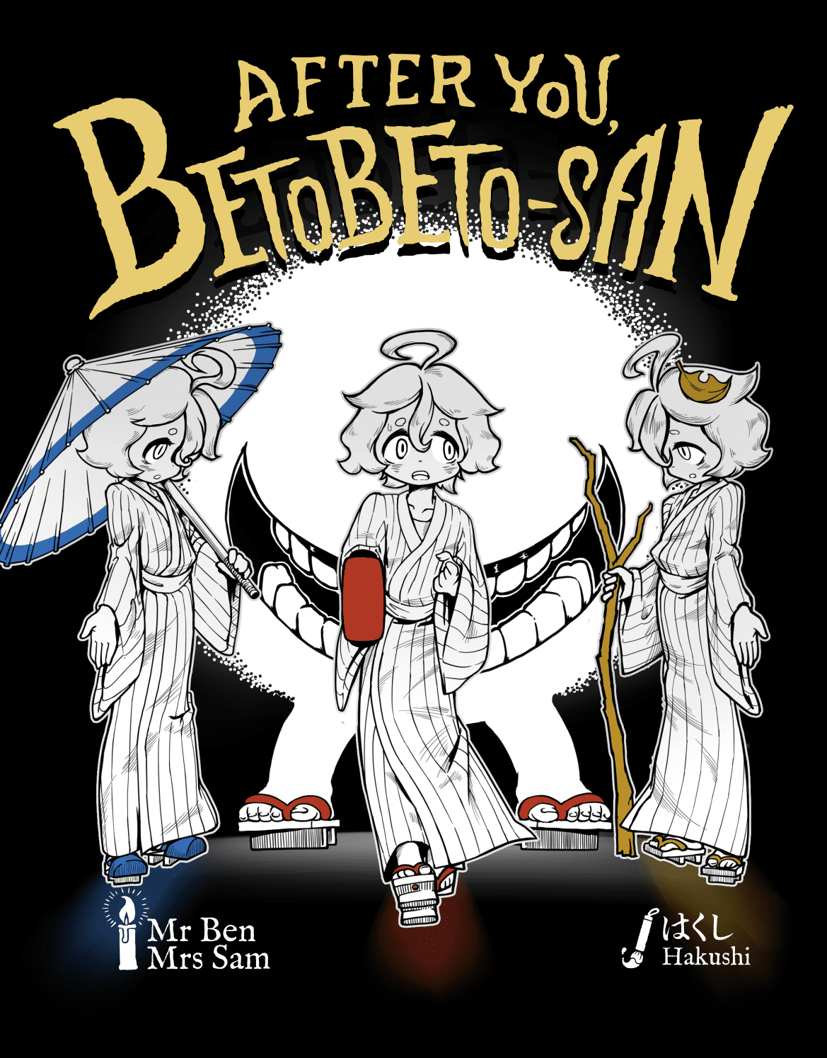 Descrizione: After You, Betobetosan, A Trick-Taking Game of Creeping Dread for 4 Players Every night, on quiet streets lit only by flickering lanterns, something follows. You hear it—step, step… step, step…—always just behind you, never in sight. It is Betobetosan, a yokai known in Japanese folklore for silently trailing behind night-time travelers with soft, sticky footsteps. In After You, Betobetosan, you and your friends play as children walking home late at night, trying not to panic as Betobetosan draws closer. One player becomes the unsettling yokai, using limited information and shifting suits to win tricks and spread fear. The other players—Children—must stay one step ahead, using clever cardplay, illuminated safe zones, and their one precious "After You, Betobeto-san" card to avoid gaining Fear tokens. But be careful. If you match Betobetosan’s move exactly, you don’t just lose the trick—you’ve locked eyes with the yokai. And once you do, fear creeps in faster than footsteps in the dark. Will you brave the night and outsmart Betobetosan… or be the next one left trembling on the roadside? —description from the designer