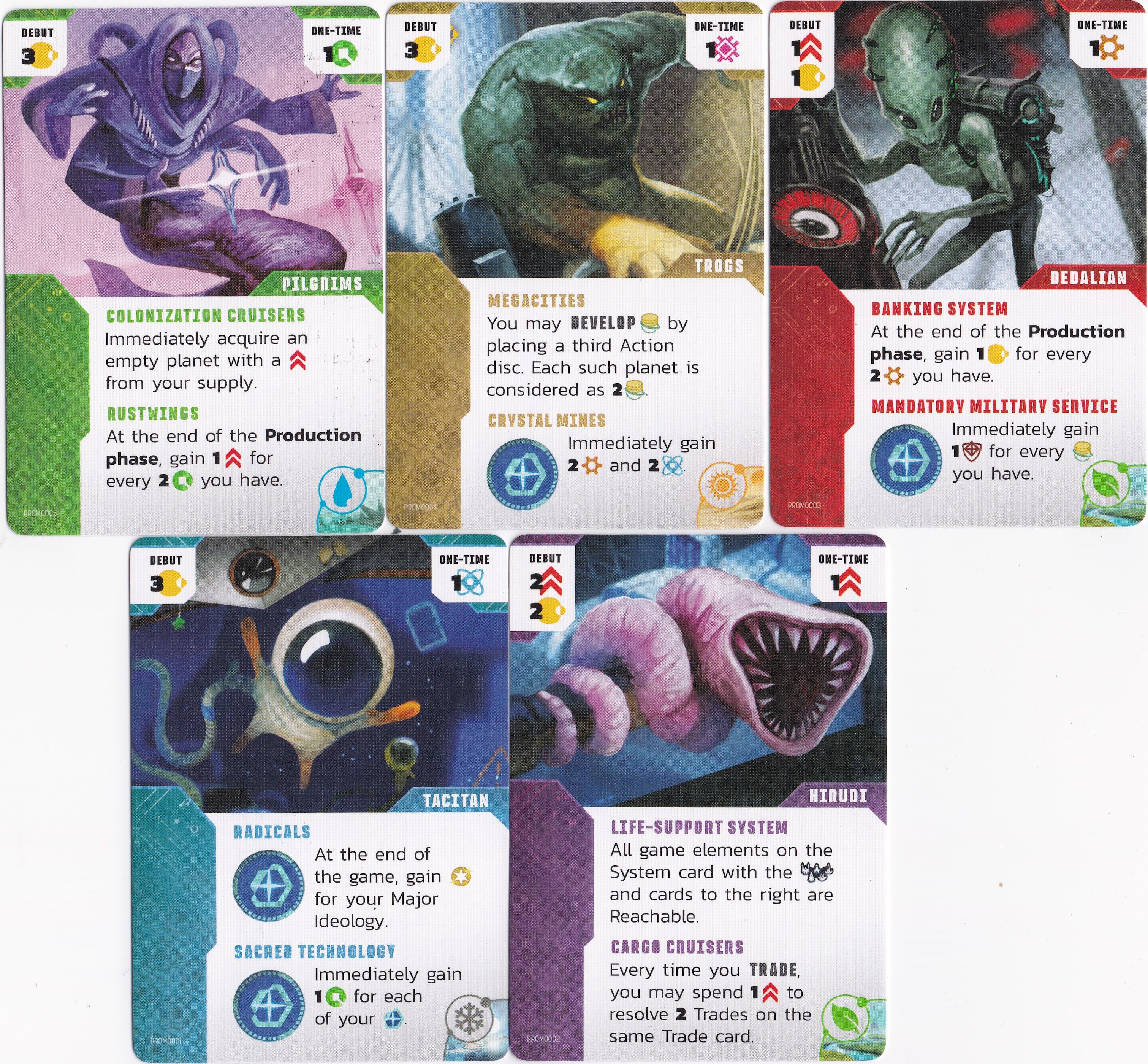 1. When you develop you may instead place a third disc on one of your already developed Planets. It now counts for 2 developed Planets.