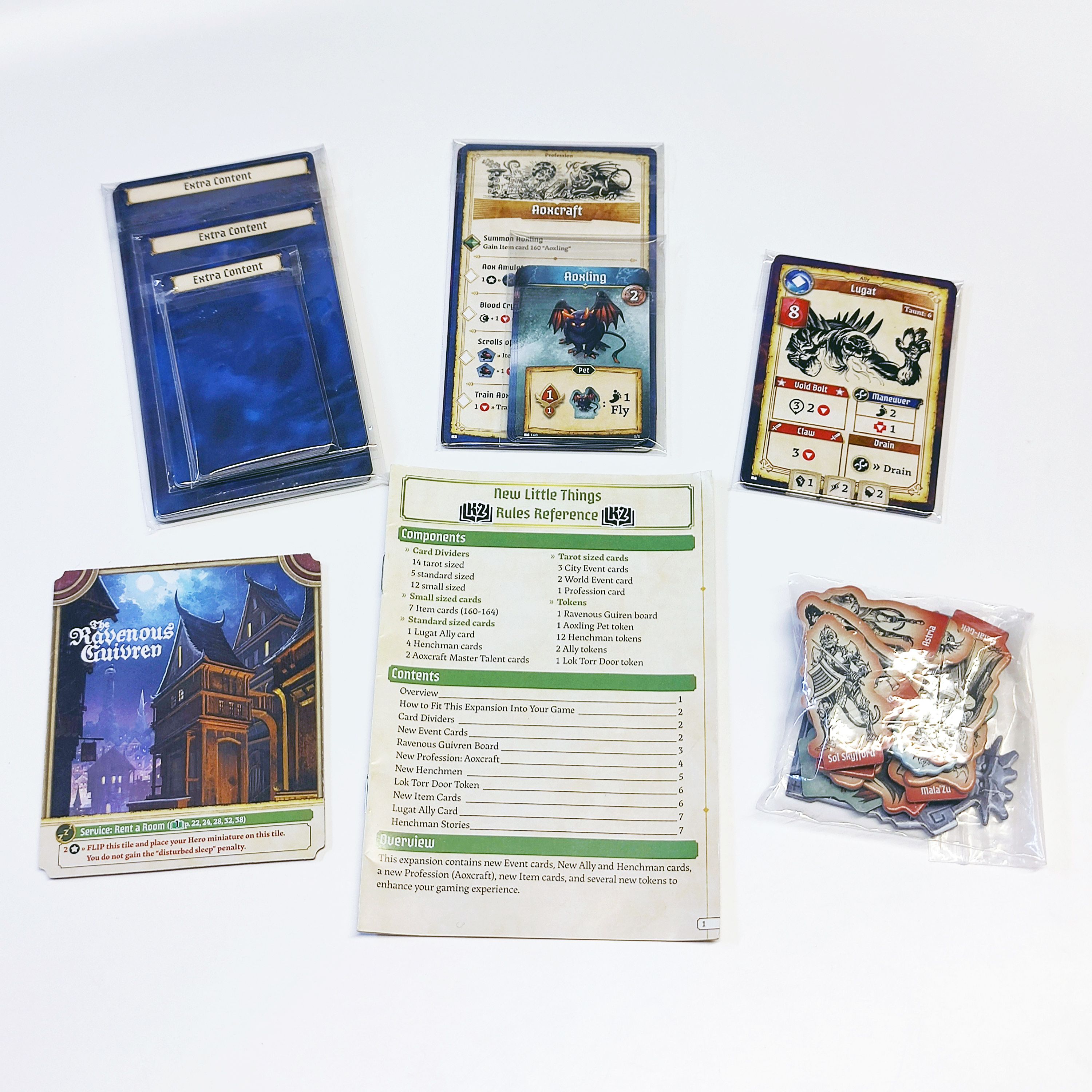 Descrizione: This expansion contains new Event Cards, New Ally and Henchmen cards, a new Profession (Aoxcraft), new Item cards, and several new tokens to enhance your gaming experience.