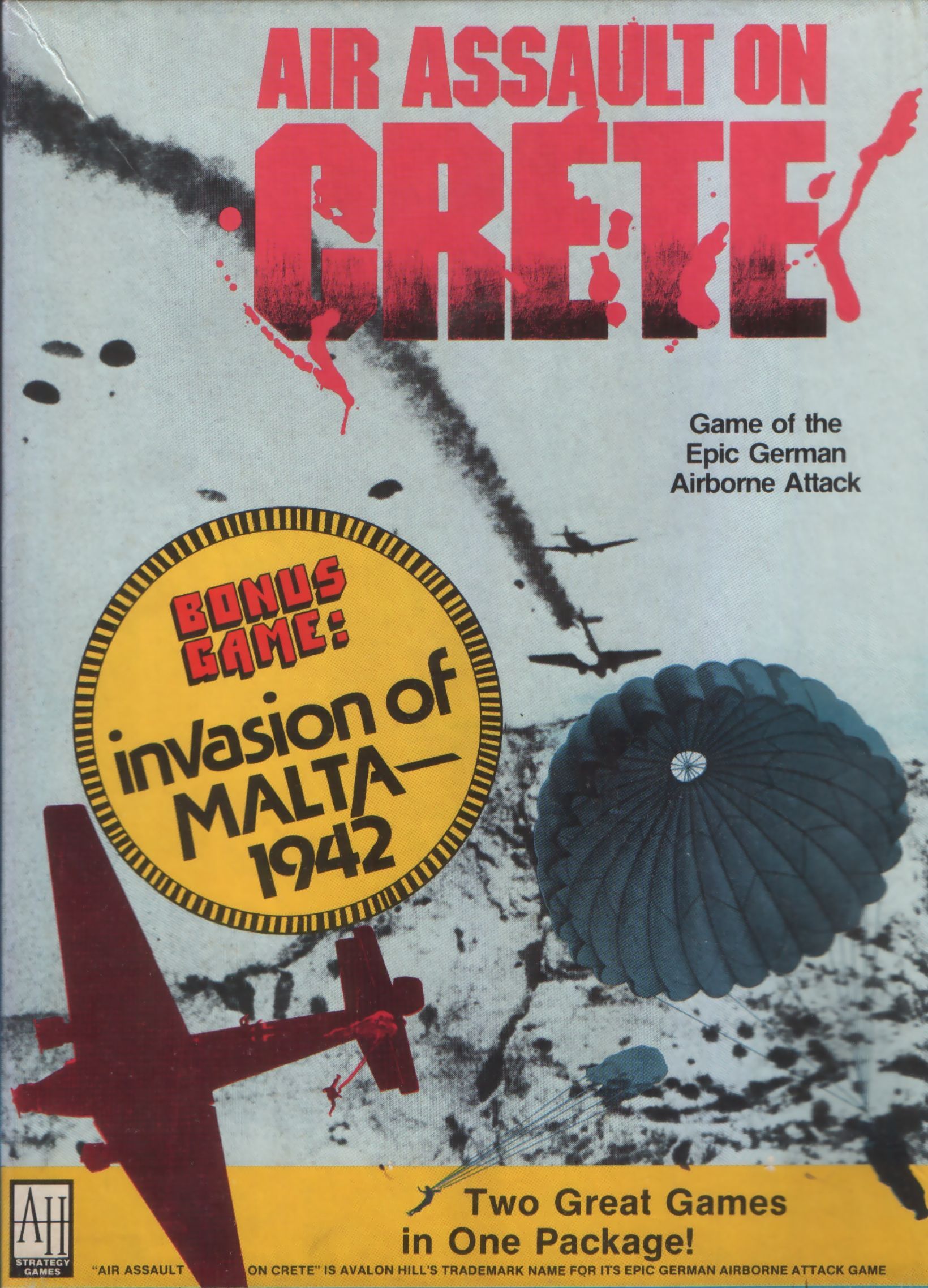 Air Assault on Crete features a bonus game, Invasion of Malta--1942, and a third game, if you count the variant from The General magazine, Volume 18, #3, Assault on Cyprus. Each game includes its own mapboard and counters and shares only a minimum of components with the other, however, they share the same basic rules system.