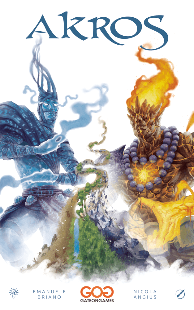 Akros is an asymmetrical hexagon-tile placement game for two players in which they both play as titanic creatures during the genesis of a new world. By using your elemental servants you’ll have the chance to shape the scenery of a small new world to gain control of its various regions. At the end of the game, each player adds the value of all regions controlled by their servants to determine who has dominion over each environment. The player who has dominion over the majority of the three environment types will claim the merit of creation.