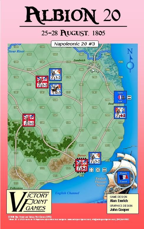 With his newly trained and organized Grande Armée, Napoleon masses his forces in Boulogne for the great invasion. The Franco-Spanish fleet arrives on time to seize control of the English Channel, and a hell-for-leather landing is made aimed straight at London – the Kent Campaign ensues! With special post-landing maneuvering and naval conflict abstractions, Albion 20 adds many fascinating new features to simulate this campaign.