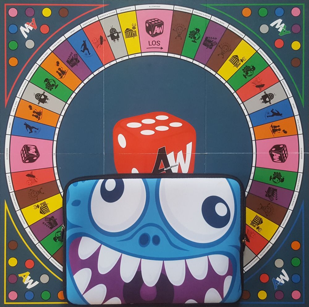 Descrizione: Alleswisser is a trivia game, with the goal to win knowledge cups in 9 categories or to be the first to circle the board three times. The special feature here is that, by using an app via tablet or smartphone, questions and tasks adapt to the age and level of knowledge of the respective player. So it is a rare trivia game that can be played with adults and kids.
