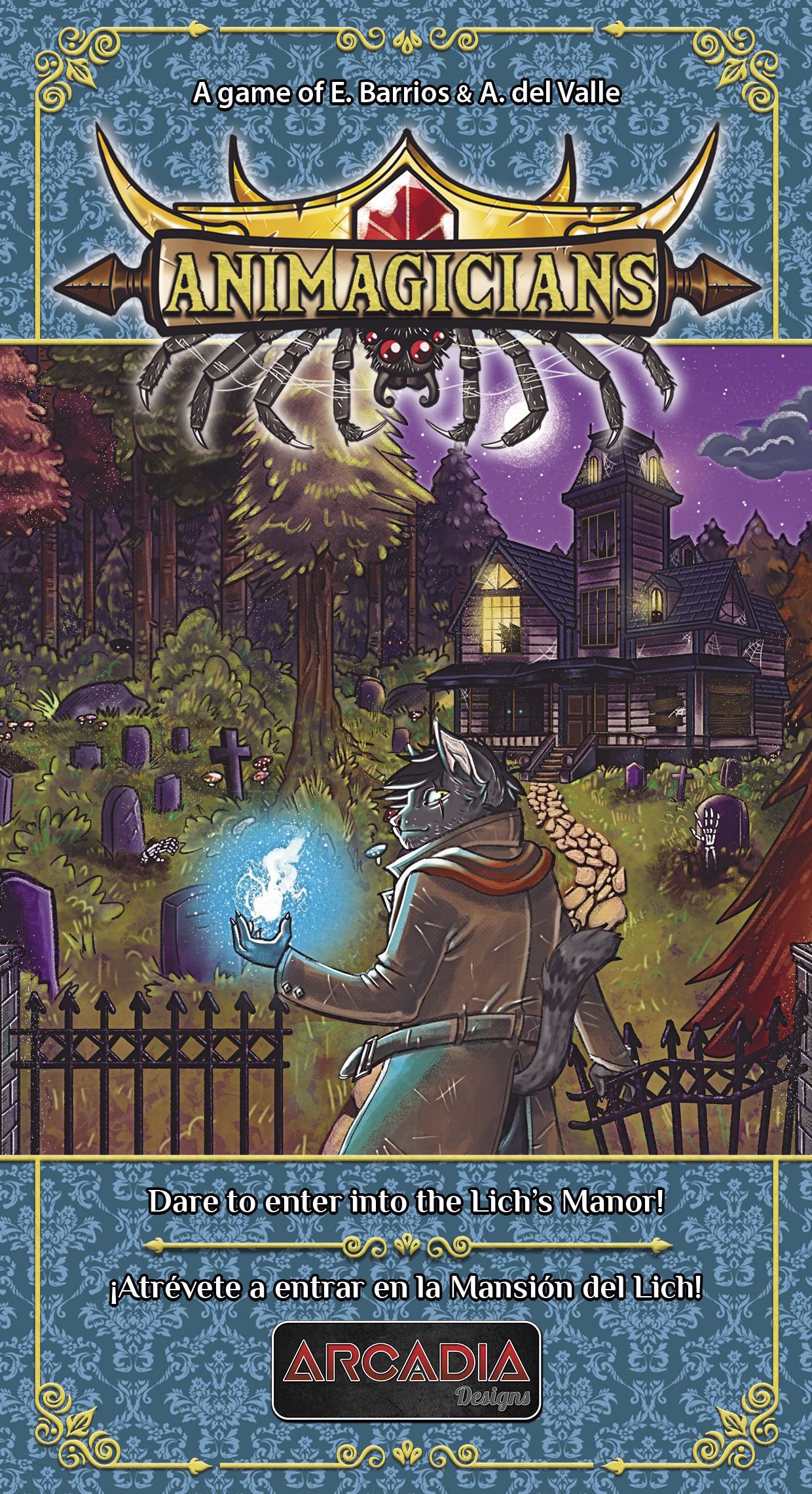 Descrizione: Animagicians is a fast and fun card game of battles and bluffing where each player represents a Dark Seeker, magicians with the ability of cage the souls of the monsters into crystal shards, gathering more and more power in order to become the most powerful Dark Seeker ever seen. Travel to the Manor on the Forgotten Hill, where rumors says that a powerful Lich hides, cage its Soul, steal its Relics and face your friends in this fantastic game for 1-6 players!