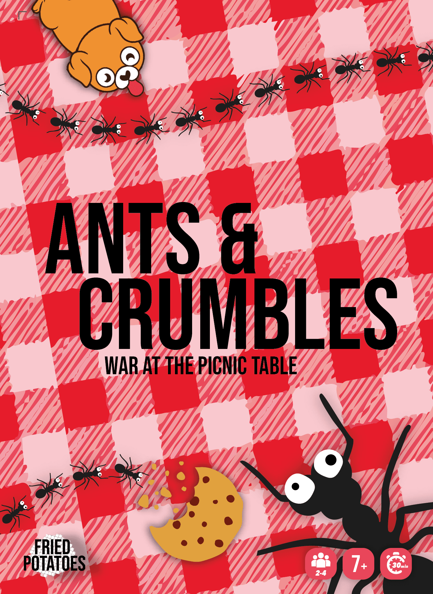 In Ants & Crumbles, players guide their ant colonies across the checkered tablecloth by growing from the front and shrinking from the back. Each decision matters: the path you choose can open new opportunities or cut off your rivals.