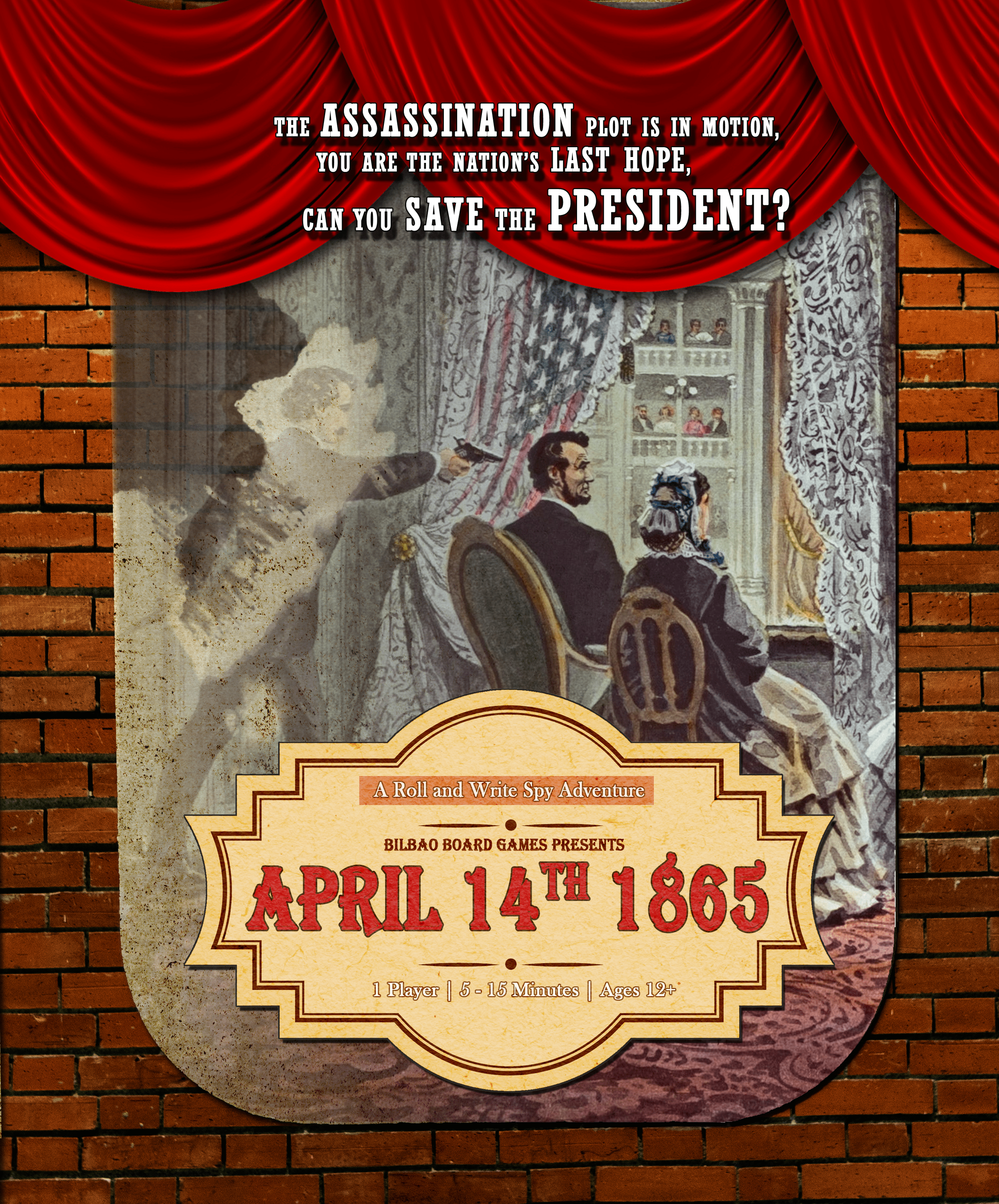 Embark on a thrilling roll-and-write spy adventure, armed only with a marker and a die. As a double agent, your mission is clear: infiltrate Booth's nefarious circle of conspirators and prevent the assassination of President Lincoln. To do that you'll need to make contact at a safe house, perform missions to prove yourself and then finally rendezvous with Booth.