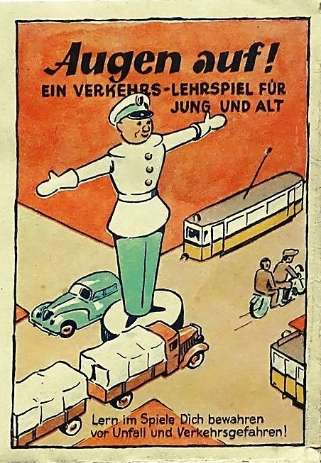 Descrizione: The players take turns to roll and move. On some spaces traffic situations hinder or benefit the players. The first to reach space 85 wins the game.