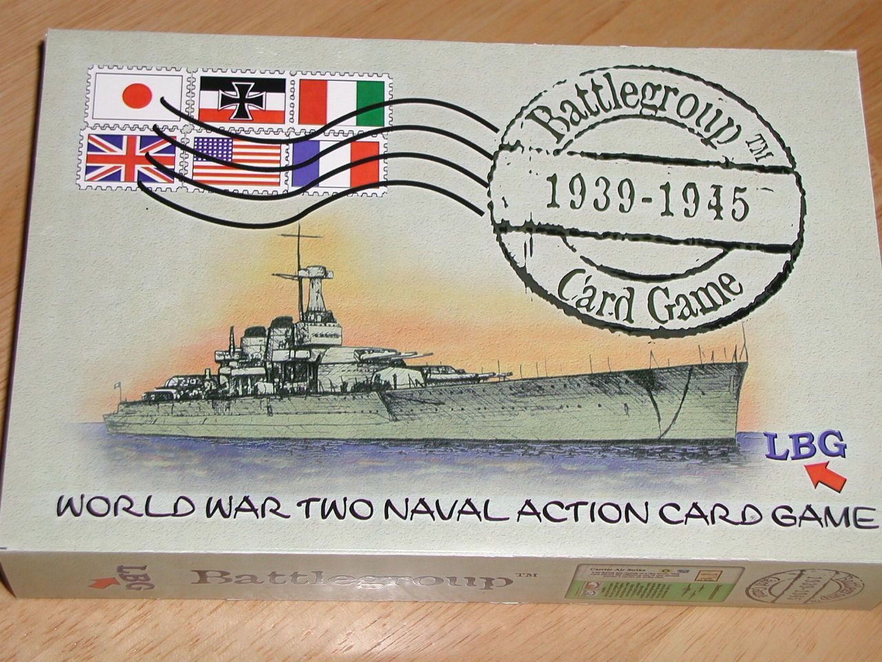 Descrizione: "This is an entertaining card game of strategy and chance based on WWII naval combat, when fleets combined the awesome firepower of traditional battleships with long-range bombing strikes from aircraft carriers. Players determine when and how to seek combat; to use daylight for smashing carrier air strikes through defending fighters and dense anti-aircraft fire or to use the dark of night for quick and devastating surface attacks using the battleships' big guns. Submarines, destroyers, mines and torpedo boats also all play their roles."