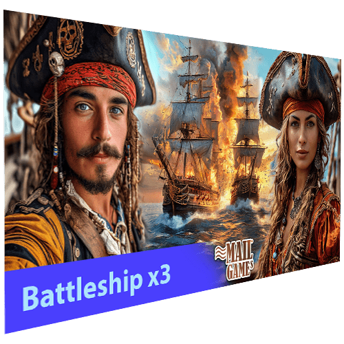 Descrizione: Battleship x3 is a camping version of Battleship, expanded for a group of three players. You can fight in a sea battle as two according to the classic rules, or you can play three in a new way! A game for three expands the variations of the battle, adds a spirit of rivalry or teamwork, for example, creating alliances of the navy. Other technical features: waterproof cards for multiple games with erasable markers, small overall size and very light weight (less than an ounce). The game (without markers) can be sent in a regular postal envelope! Therefore, this game is part of a series of optimized Mail games! In addition, the publisher has prepared a separate PDF version of the game for fans of independent Print & Play. Fair winds in the sails of your fleet and good luck in the accuracy of shooting cannons!