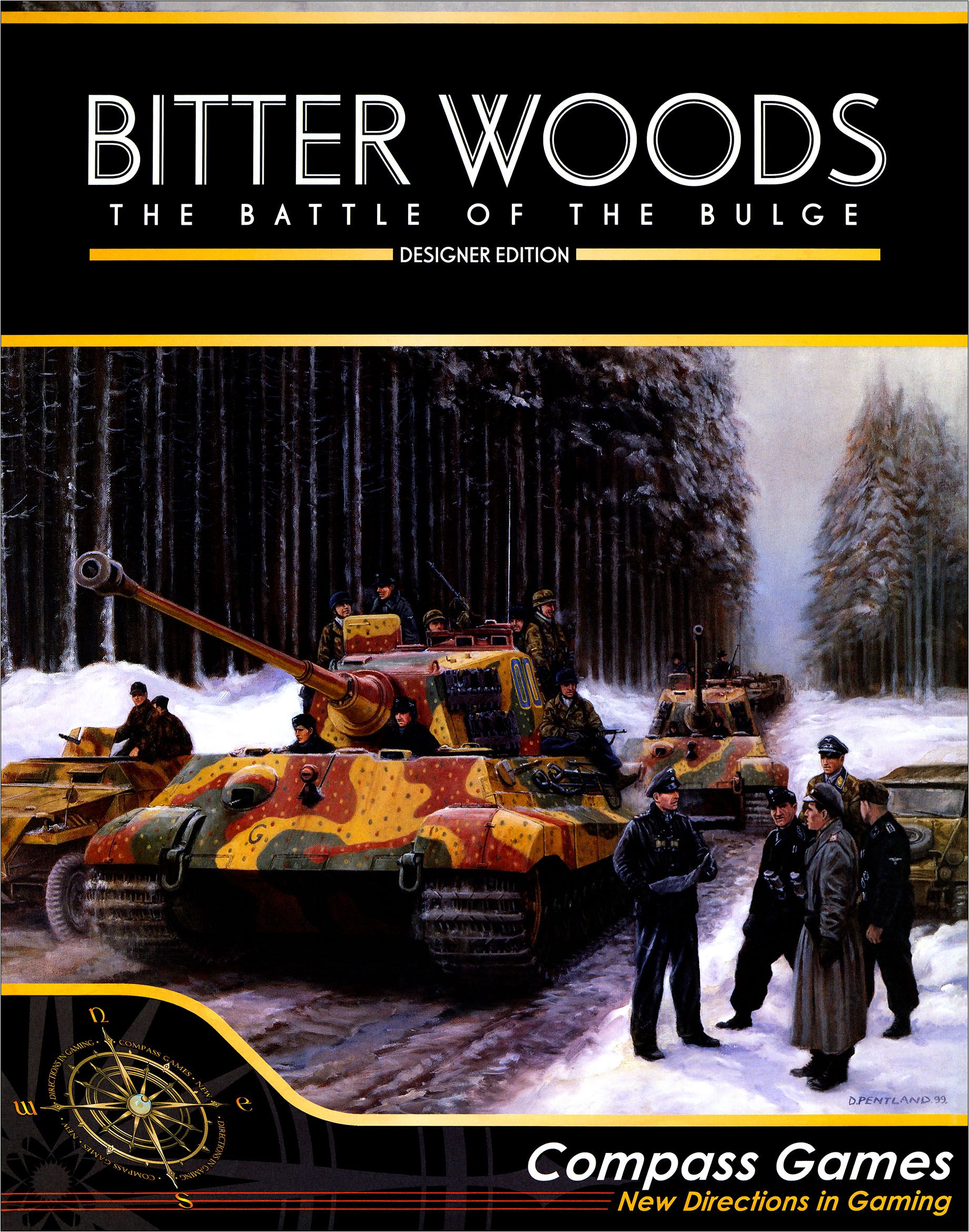 Designer Edition Bitter Woods is the premier edition of this highly acclaimed regimental level Battle of the Bulge game and includes all aspects of the original game plus the expansion edition. The potential for mechanized exploitation movement and an appropriate Allied counterattack capability ensure an exciting challenge for both sides. Designer Edition Bitter Woods is highly playable, yet historically accurate, further ensuring a game you will want to revisit for years to come.