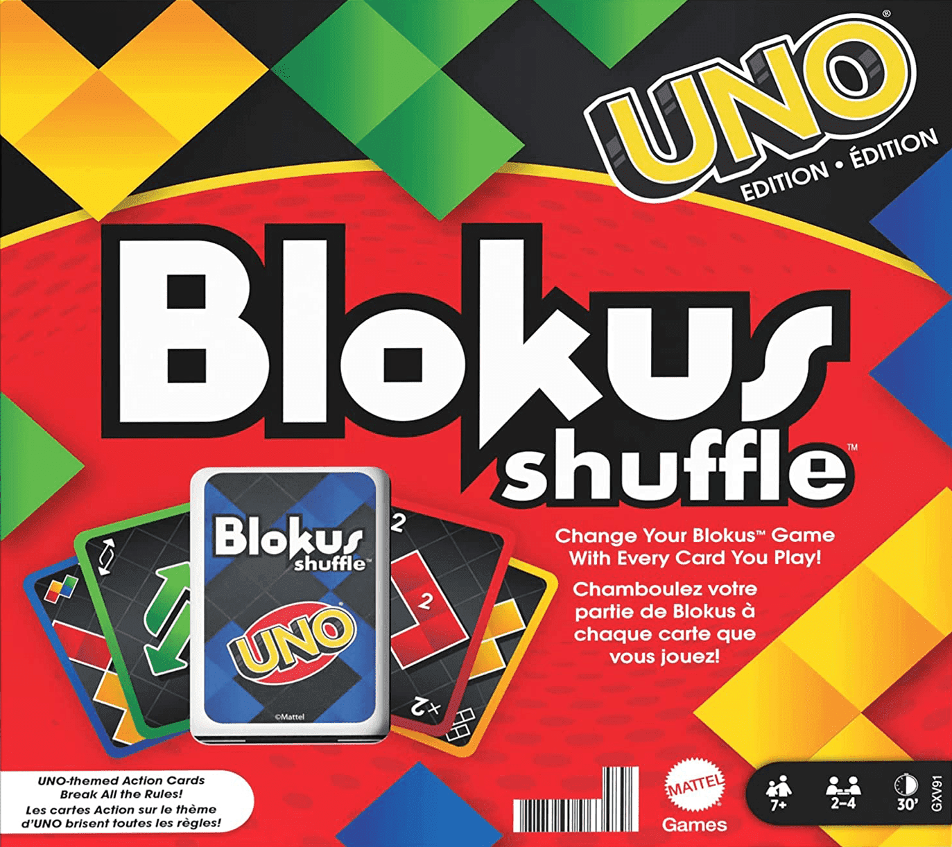 Descrizione: Blokus Shuffle: UNO Edition is a wild take on traditional Blokus. The object of the game hasn't changed - play as many of your pieces as possible onto the board by following the one rule of Blokus: each piece you play must touch another of your pieces only at the corner. The twist? Each player has a deck of action cards at their disposal to really change up the game.