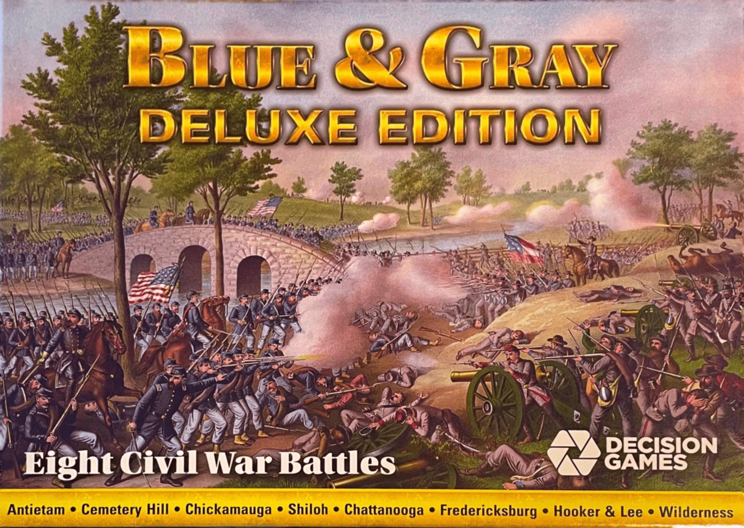 Blue & Gray Deluxe Edition consists of the original eight games from the SPI Blue & Gray I & II Quadrigames. The battles depicted are among the most important of the American Civil War: Shiloh, Antietam, Fredericksburg, Chancellorsville (Hooker & Lee), Gettysburg (Cemetery Hill), Chickamauga, Chattanooga, and The Battle of the Wilderness.