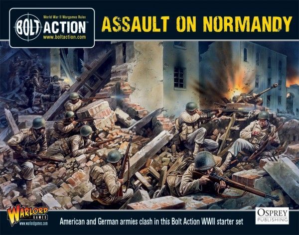 Descrizione: Bolt Action: Assault on Normandy brings to you everything you need to pit your tactics and wits against your opponent as you recreate the great battles of World War II on the tabletop! In addition to the glorious Bolt Action rulebook and eight Orders Dice, you will find forty hard plastic, multi-pose 28mm miniatures as well as terrain for them to fight over. This is a great starting point as you seek to defeat your foes and bring an end to the greatest conflict in history.
