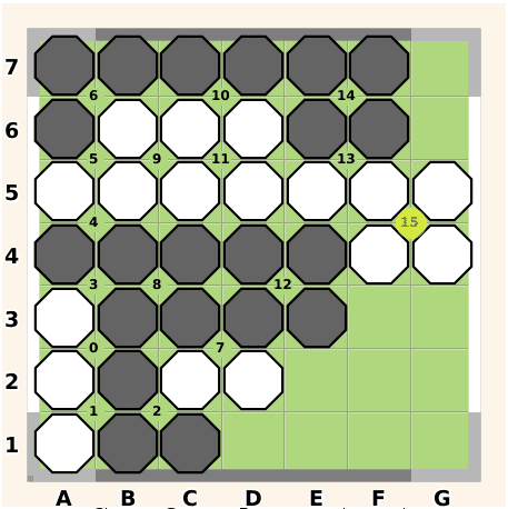 Descrizione: Brickway is a connection game for two players: Black and White. It is played on the intersections (points) of an initially empty square grid (board). The top and bottom edges of the board are colored black; the left and right edges are colored white.