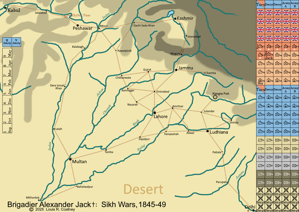 Descrizione: An abstracted regimental level game about the British (and Sepoy) battles against the Sikhs and their potential Afghan and Kashmiri allies in the Punjab.