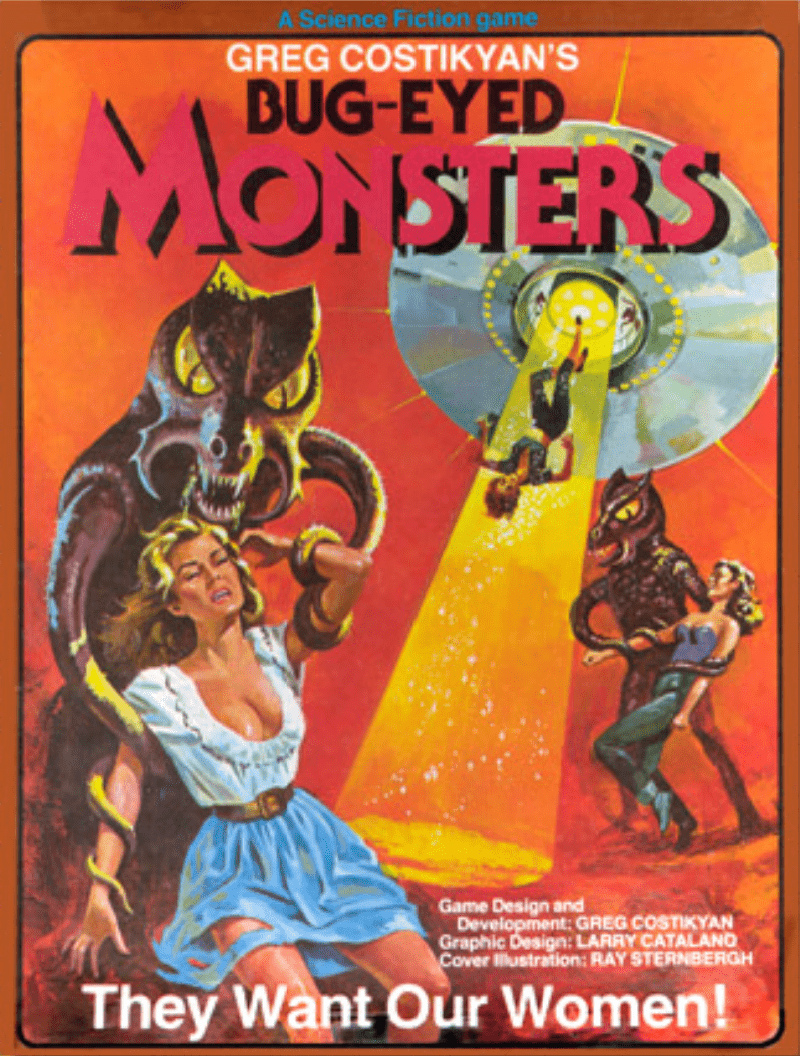 Descrizione: "They want our women!" reads the box cover. Based on the science fiction movies of the 1950s, especially They Came From Outer Space, the cover also shows three well-developed women in pedal-pushers, pumps, and low-cut blouses caught in the clutches of tentacled creatures with large eyes and crunching mouth parts.