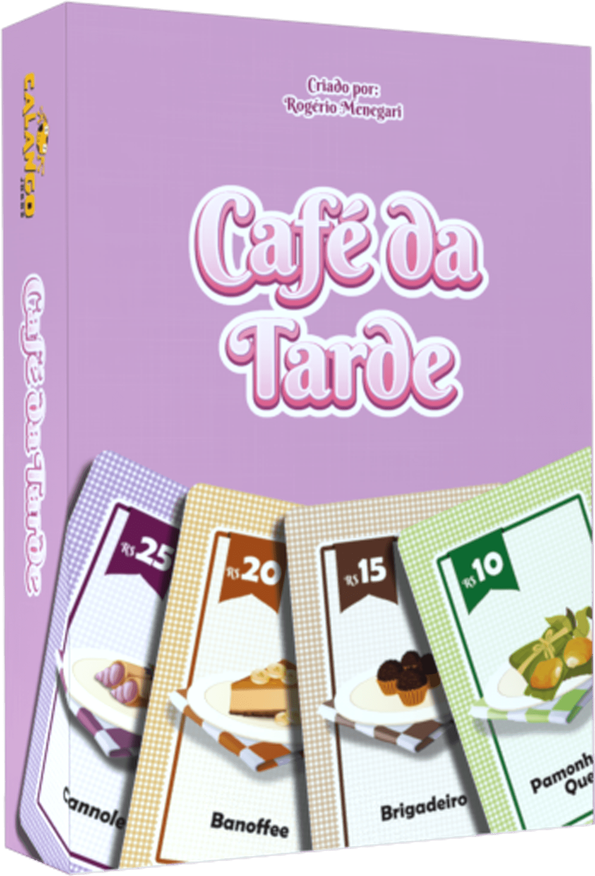 Café da Tarde is a fast-paced card game for 2 to 5 players. On their turn, players play cards from their hands to their table, representing different treats and actions. The main goal is to collect valuable food cards and protect them while disrupting your opponents' collections. Cards may allow you to steal from others, block thefts, split points, or trigger other effects.