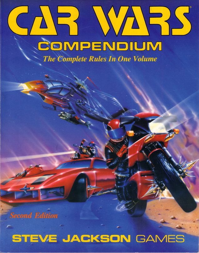 Car Wars Compendium (first edition, 1989) Blue cover – Essentially combines the rules for cars, trucks and cycles from prior editions into the Third Edition of Car Wars