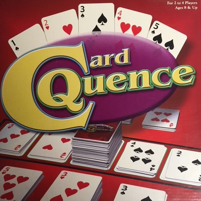 Descrizione: Card C-Quence is a light family speed game. It consists of a deck of 144 cards and a game board. This game is unique in that it only contains Hearts, Spades, and wild cards.