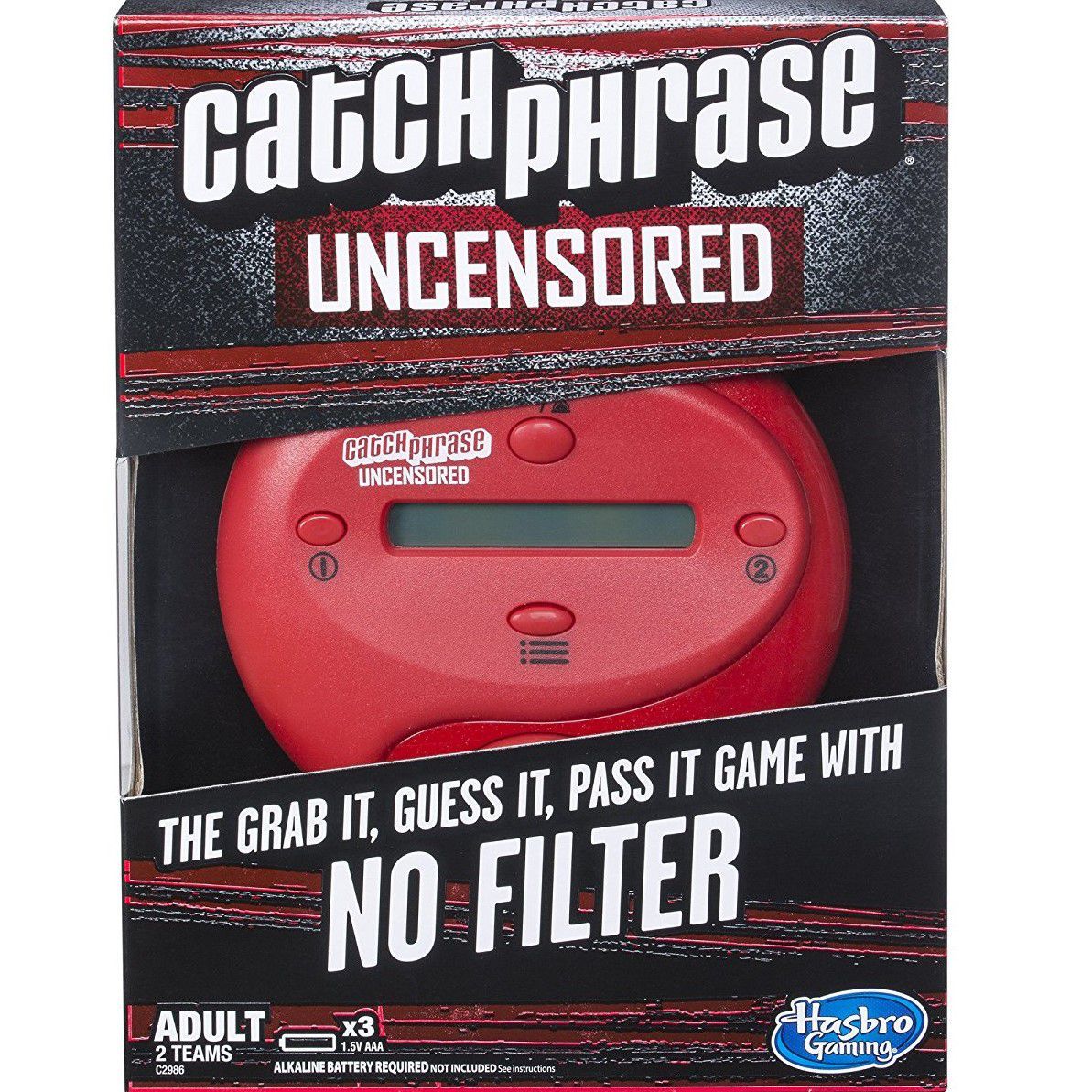 Descrizione: It's the Grab It, Guess It, Pass It Game…with no filter! This edition of the electronic Catch Phrase game is for adults only! Gather your friends together, choose, teams, and try to get your teammates to say the displayed phrase or word by giving them clues. There are plenty of categories to choose from including Entertained, Pick Me, Things and Stuff, World Wide What, and You Never Know. Some phrases are not suitable for work, and others are just off-the-wall such as ""pee in the pool"", ""silent but deadly"", and ""wrecking ball"". Don't get caught holding the unit when the buzzer goes off because the other team will score a point. The first team to reach 7 points wins.
