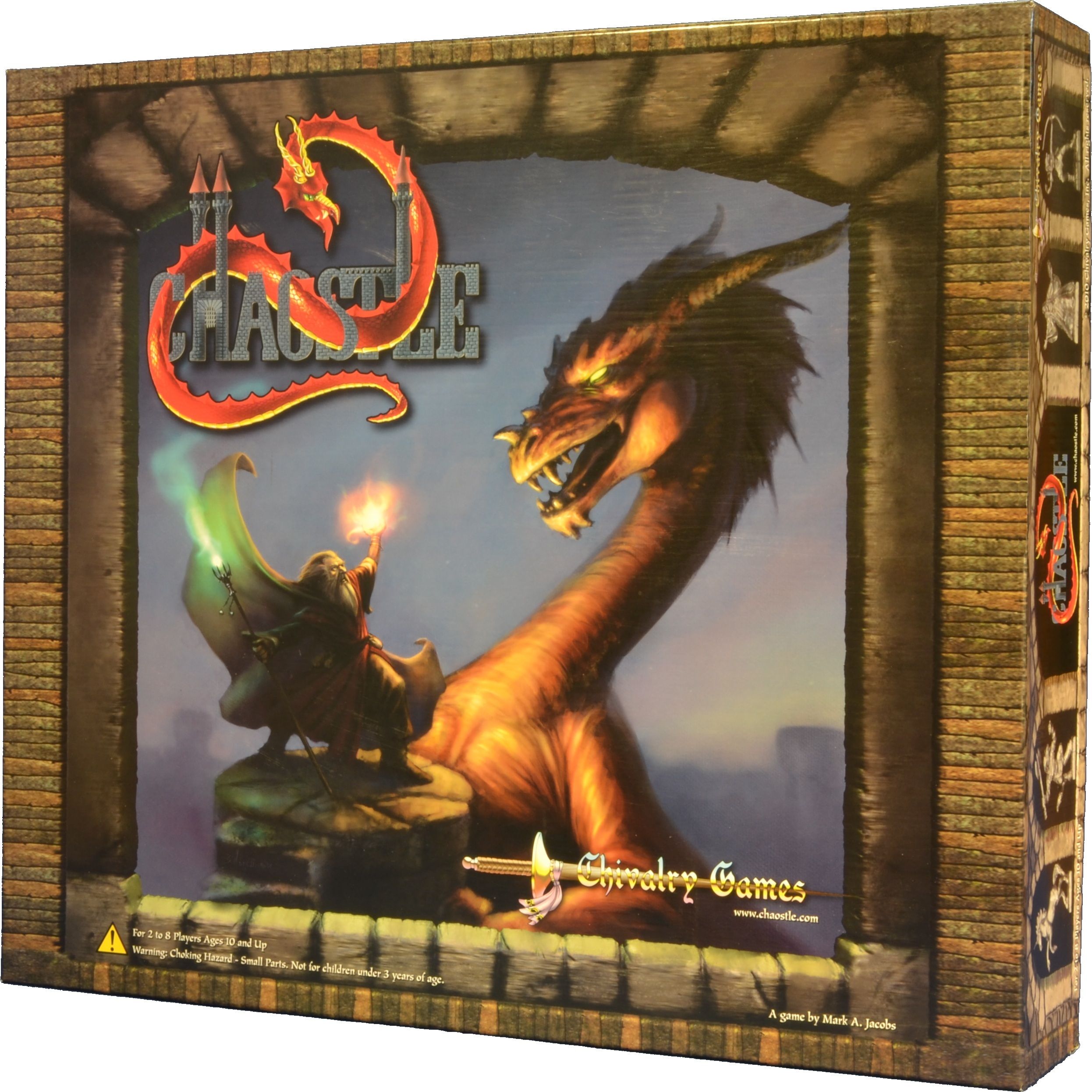 Descrizione: Chaostle (kâ'os'l) is a combination of the words Chaos and Castle. Chaostle is a three-dimensional castle fantasy board game. Each player selects their starting armies that they will use to battle against their enemies in an attempt to conquer the castle for their King or Queen. The armies consist of many different fantasy fighters with unique skills and weaknesses such as wizards, dragons, unicorns, knights, archers, etc. The fighters are custom collectible plastic miniatures. The game has many levels of strategy that can be offset by a wide range of fates (both good and bad).