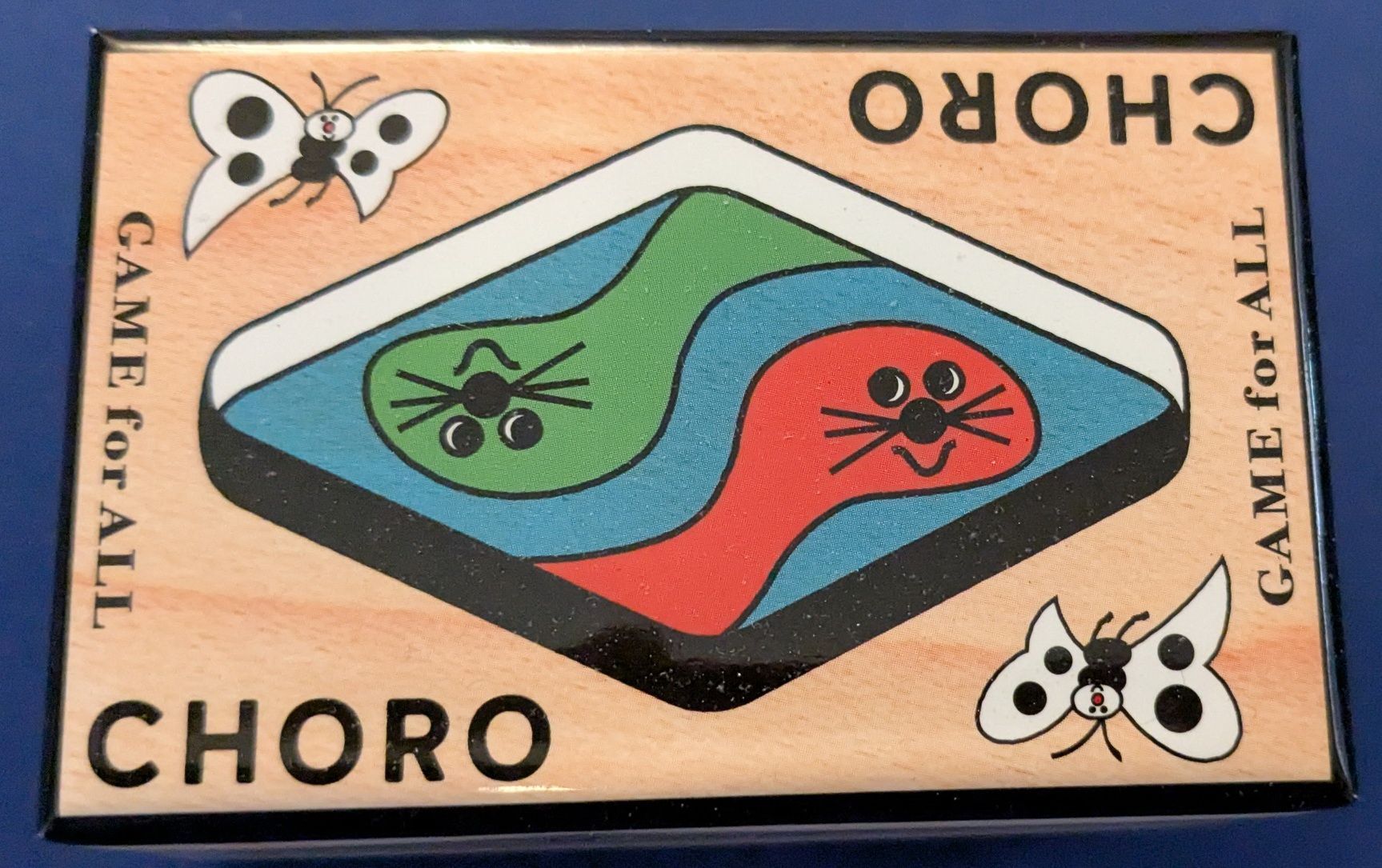 Choro comes from the Japanese word chorotto, which means a little. Creatures are chorotto peeking out from the holes on diamond-shaped cards. The rules of the game are simple, like Reversi. But when butterflies flutter into the game, everything changes!"