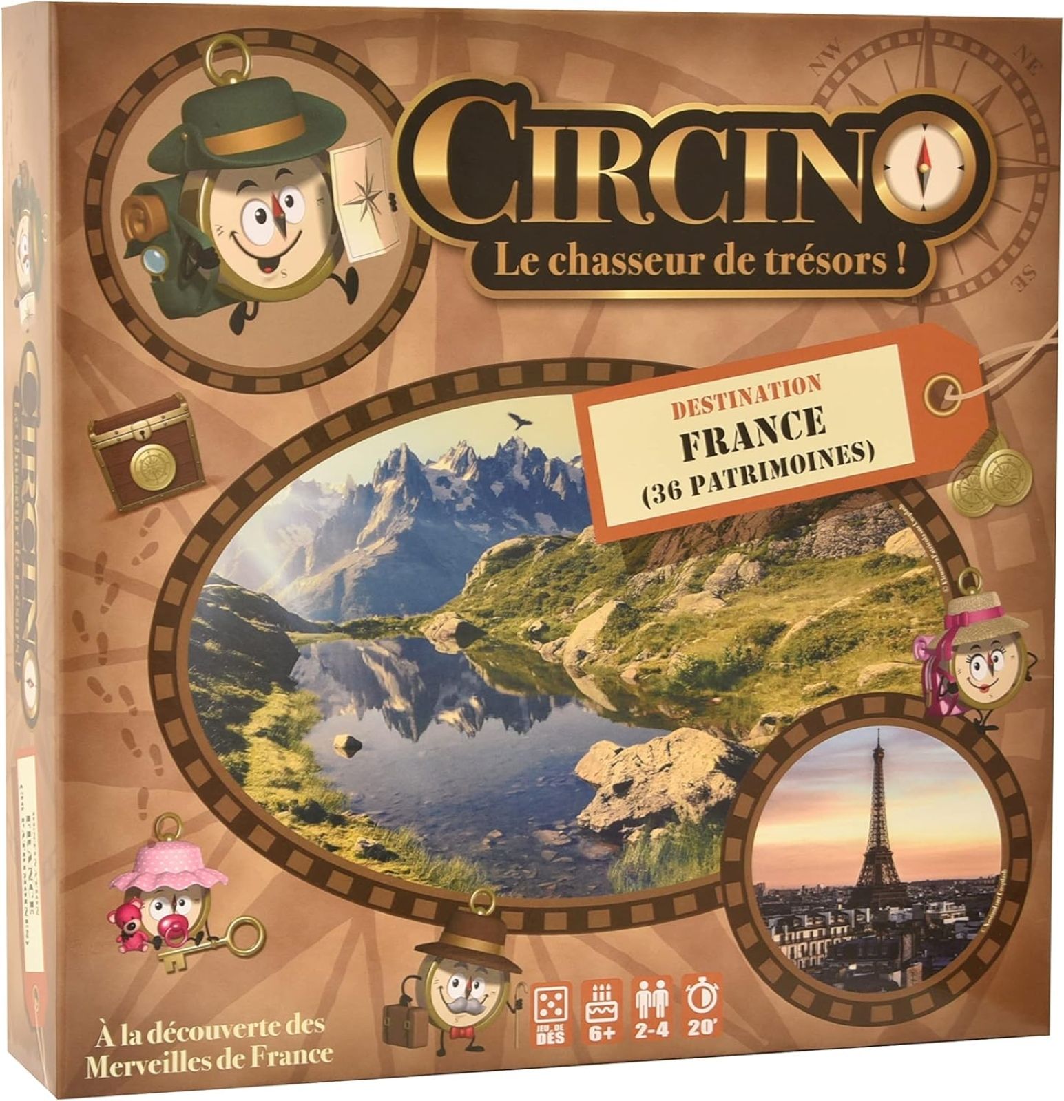Descrizione: Who as a child hasn't dreamed of discovering a mysterious treasure? In Circino France, 8 mysterious chests contain the hidden treasures of France. From the Cyclops to Mont Saint-Michel, to Stanislas Place to the Aligations de Carnac, the Salt Marshes of Guérande, the Château de Chambord etc... 36 heritage of France will occupy a central and domite place in the game. This intersection of Indiana Jones and Jumanji allows anyone, regardless of their age or level of knowledge, to share moments of conviviality and exchange by discovering or rediscovering our wonderful land. —description from the publisher (translated) Qui, enfant, n'a jamais rêvé de découvrir un mystérieux trésor ? Dans Circino France, 8 coffres mystérieux renferment les trésors cachés de la France. Du Cyclop au Mont Saint-Michel, de la place Stanislas aux alignements de Carnac, en passant par les Marais Salants de Guérande, le Château de Chambord, etc. 36 patrimoines de la France occuperont une place centrale et dominante dans le jeu. Ce croisement entre Indiana Jones et Jumanji permet à chacun, quel que soit son âge ou son niveau de connaissances, de partager des moments de convivialité et d'échange en découvrant ou redécouvrant notre merveilleux territoire. —description from the publisher