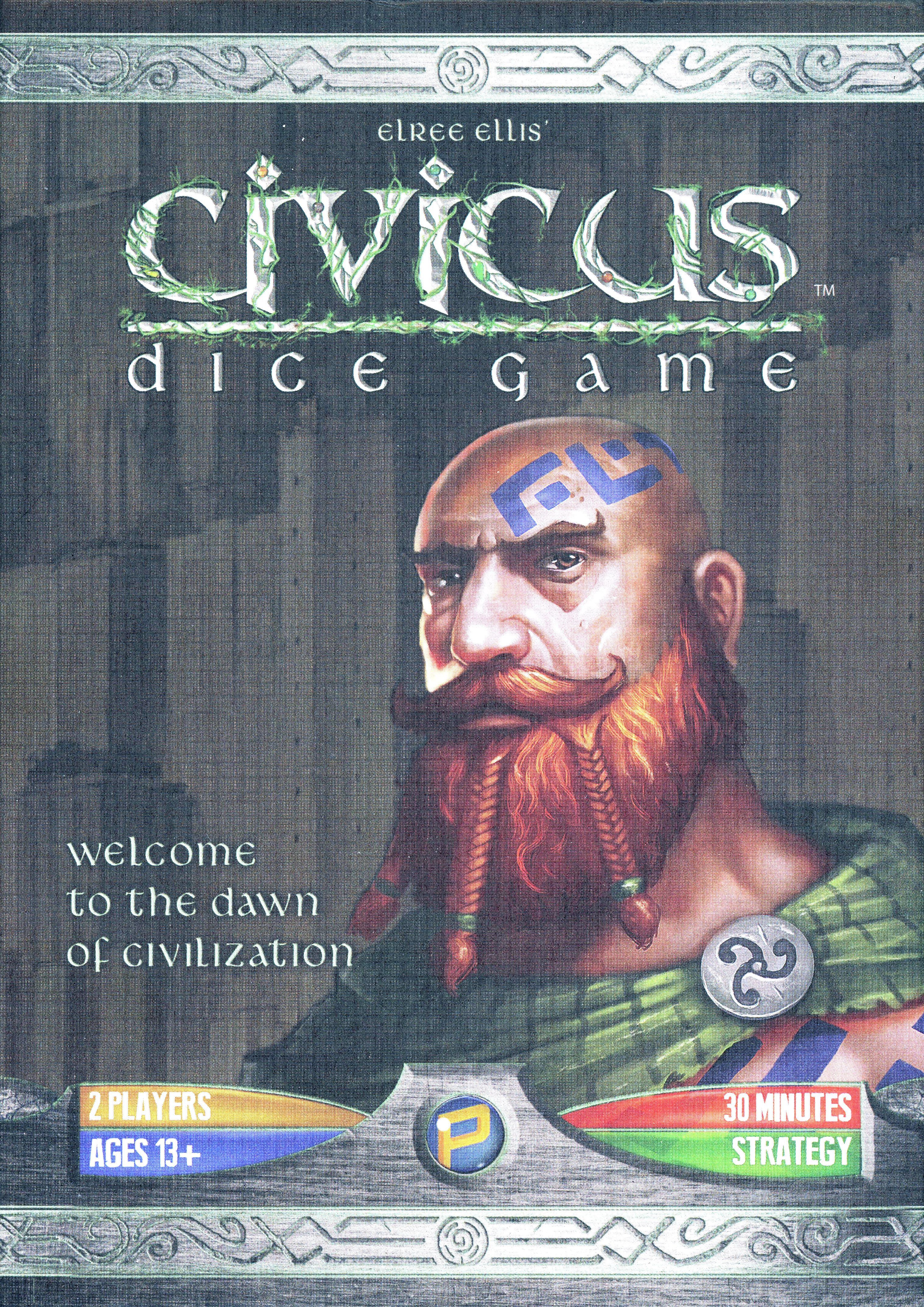 Civicus Dice Game is a civilization-themed, strategic area-control game of thoughtful settlement placement and fateful dice rolls. Players take turns placing and developing settlements in order to claim a variety of domains and their respective advantages. In order to secure victory, the players must cultivate a well balanced nation. One rich in technology, settlements & farms, markets & exotics, as well as, temples & sacred sites.