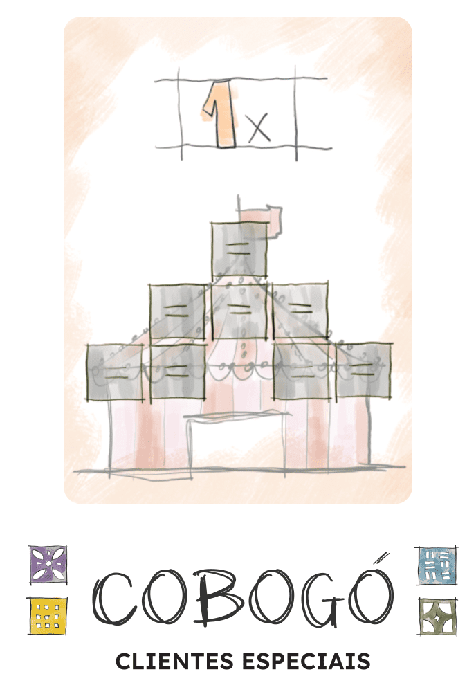 The Clientes Especiais (Special Clients) expansion adds 3 new pattern cards inspired by other games: Capivárias, Malabares (from the Piquinim Collection) and Vomitland (from Cyber Rhino Studios). These patterns are larger than the ones in the base game, but can be made with any color of cobogó.