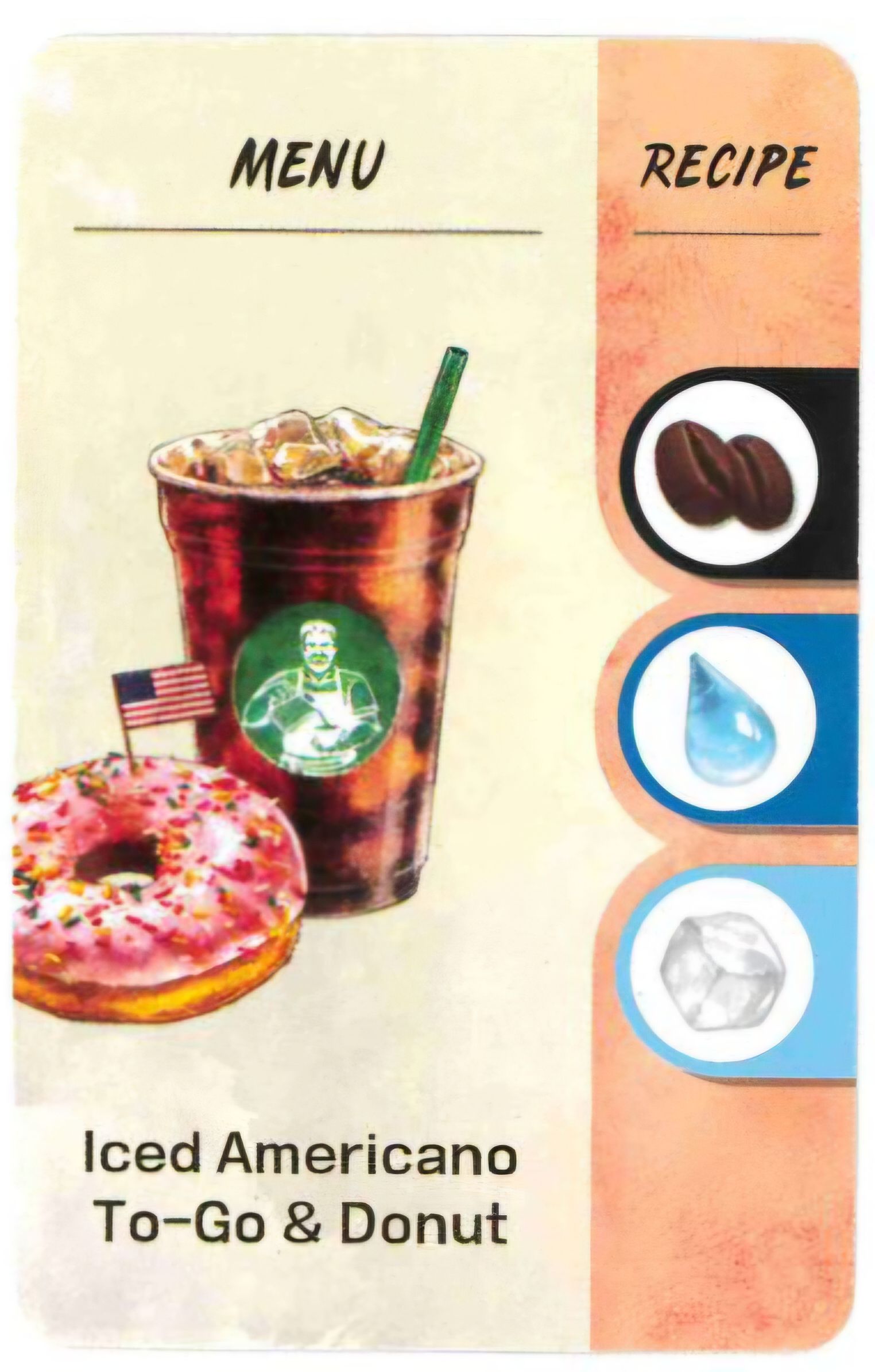 1 USA Country Order card (Iced Americano To-Go & Donut; Ingredients = Coffee Bean, Water, Ice)