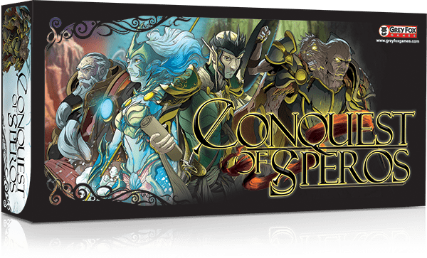 In Conquest of Speros, a quick playing game of area control and resource domination, four competing races work to exercise their dominance over the landscape and to control the export of iron, crystal and gold while also securing ownership of the powerful Ancient Artifacts buried from long ago. You lead a general and his minions. Your mission: Secure the land and destroy anything that gets in your way.