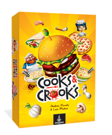 Descrizione: In Cooks & Crooks a group of international chefs compete in a cooking TV show, but unlike those ones, these chefs don’t mind playing dirty! They will try to obtain victory while sabotaging their opponent’s efforts by stealing their supplies, swapping ingredients in their ovens or even by adding a nasty ingredient to