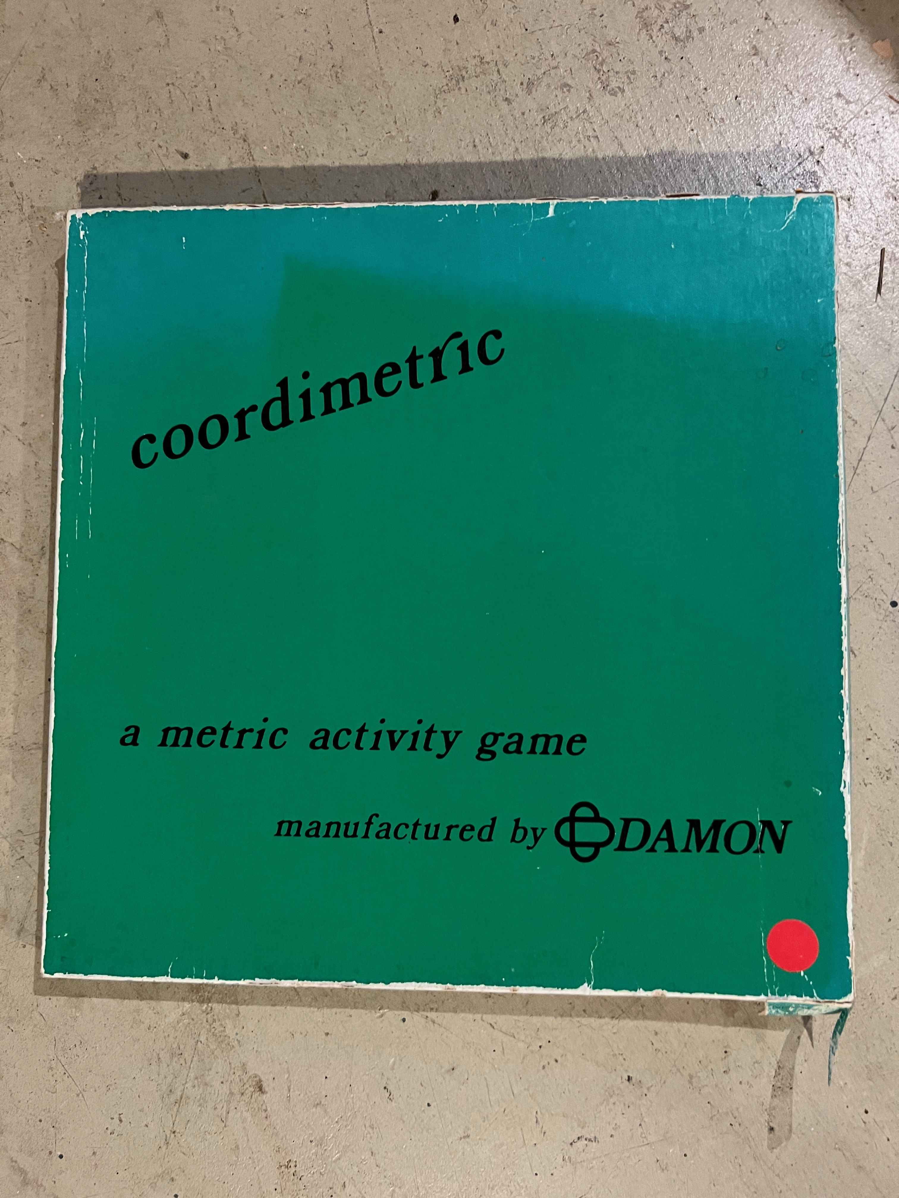 "Coordimetric consists of two sequential games which combine two distinct educational objectives: to develop the concept of the number 10 to linear metric units and to develop basic concepts of coordinate geometry. The excitement and challenge of chance linked with educational benefits of learning metric measurement make COORDIMETRIC an extremely popular game."