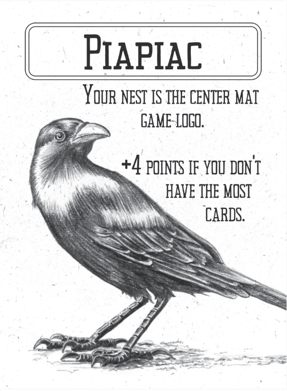 Descrizione: A neat little set of extra cards for Corvids, including the rare Piapiac as well as five copies of the 'marble' card. Available at GenCon 2025 and online for a short time after. —description from the publisher