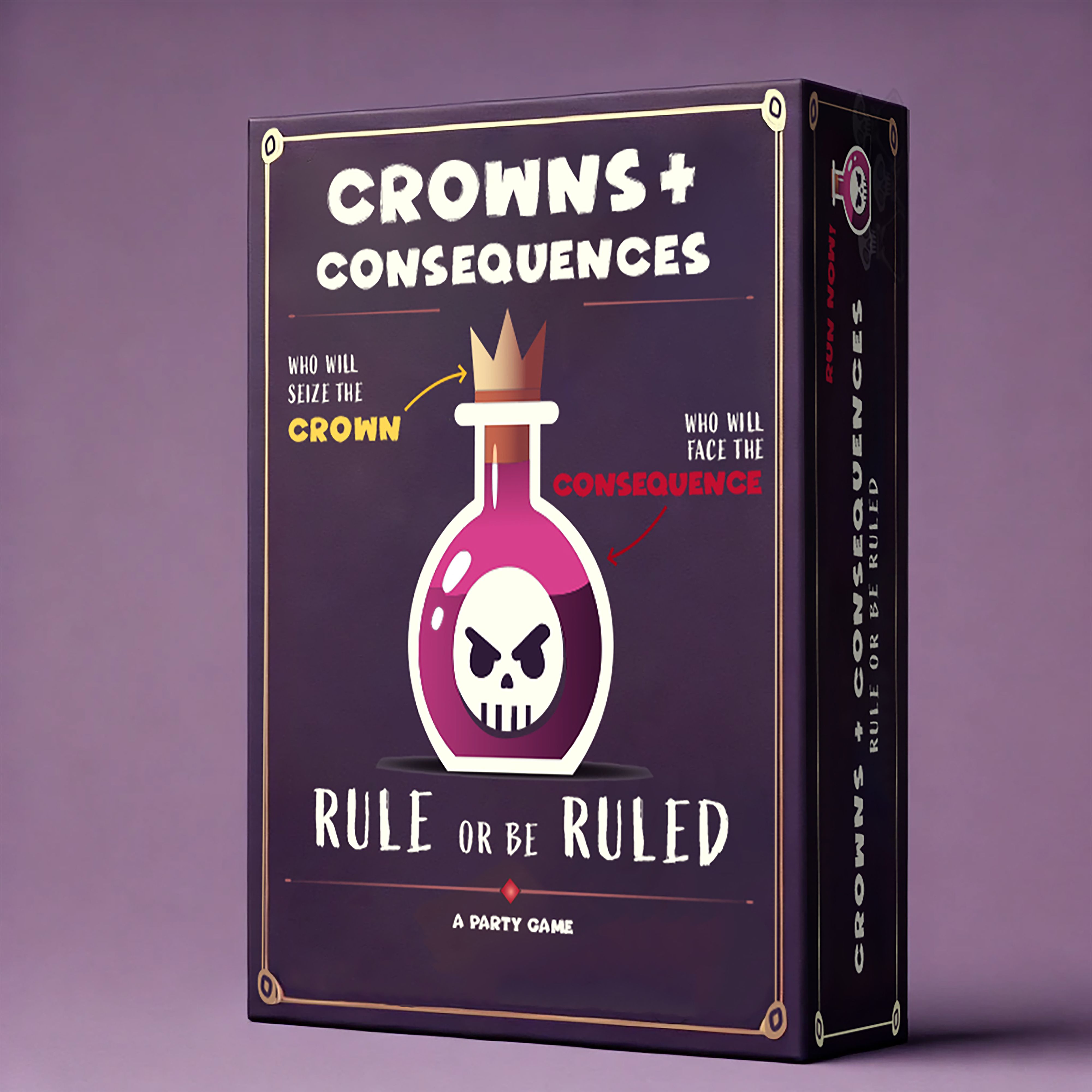 Winning: To win in Crowns & Consequences, you must outplay your opponents, make the best use of your cards, and navigate the ever-present threat of Booms and Action Cards. But remember, the real fun is in the consequences—whether you win or lose, Crowns & Consequences guarantees an unforgettable game night filled with laughter and surprises.
