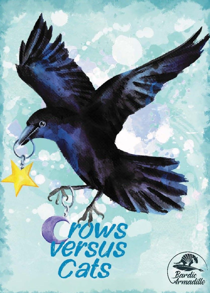 Descrizione: Crows versus Cats is a game of collecting shiny things while avoiding thieving magpies, troublesome cats, and the winds of change. A cozy chaos strategy game with some take-that elements and some random events that affect all players. 3-6 players and suitable for ages 8+.  Select one of six crows and attempt to collect five of their favorite shiny things. First to collect all five wins. But chaos cards can appear and affect everyone at the table or just one crow. To collect shiny things, players draw cards during their turn and place drawn shiny things next to their crow in the play area. Chaos cards can also be drawn and are either "Play immediately" or "Play during turn" and must be played before a player's turn can end and cannot be discarded. All art is hand-painted watercolors, no AI was used to create any part of this game. —description from the publisher