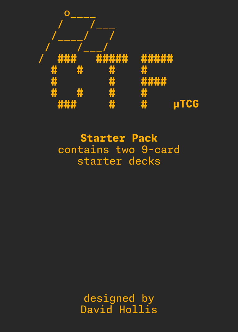 CTF is a micro-TCG. Players use starter decks and booster packs to build custom 9-card decks. Each player starts the game at Layer 0 on the tracker, with two cards randomly set aside as security cards and the rest of their deck in their hand. Play is simultaneous: each player chooses an active program from their hand and places it face-down, then both players reveal their choice and execute their programs. Some programs advance you to higher layers, and ending the turn at Layer 5 breaks your opponent's security, putting one of their security cards into their hand. If they don't have a security card left, you win!