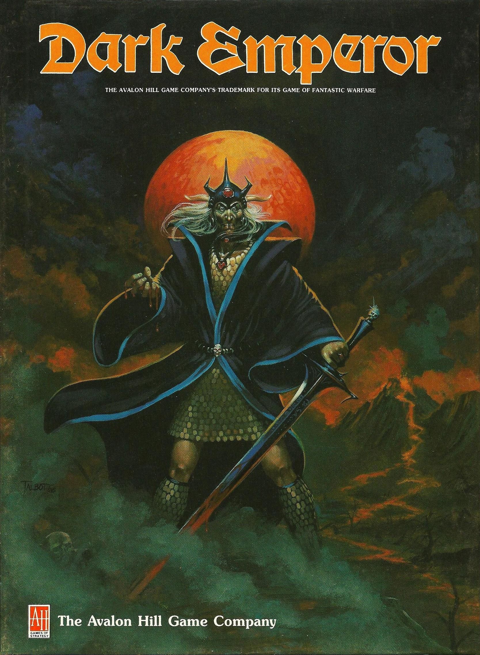 Descrizione: "Dark Emperor" is a two-player boardgame of warfare and quest in a fantasy universe. One player is a Dark Lord invading the world from another dimension; the other player must rally the kingdoms of the world to fight the invaders.