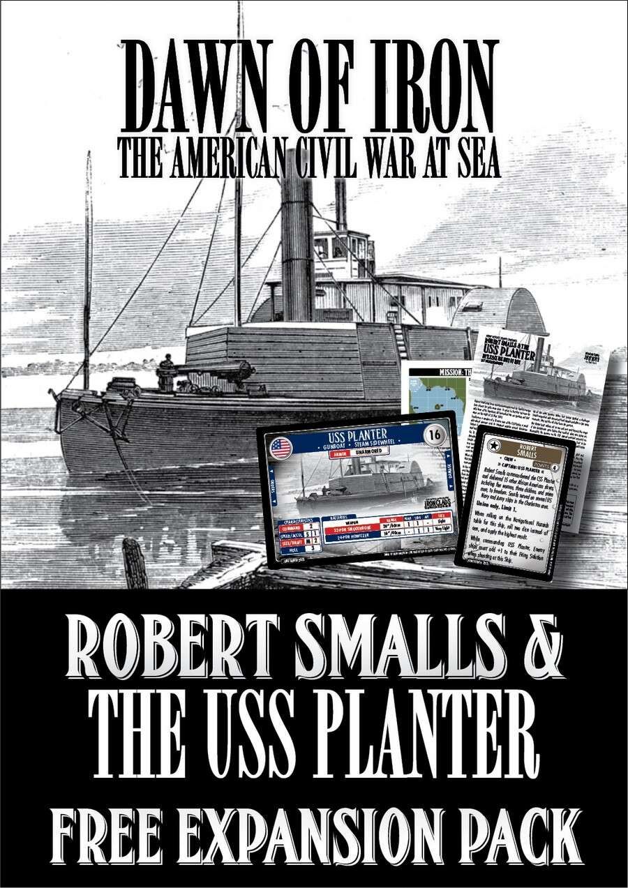 Descrizione: The attached battle pack expansion covers the amazing story of Robert Smalls and his daring bid for freedom in 1862. Inside you will find: History of the USS Planter and Robert Smalls (1pg) 1x General Play Solitaire Mission inspired by the story of Robert Smalls (1pg) 2x Ship Cards 2x Fortification Cards 1x New Upgrade Card Contains formats for A4 and US Letter paper sizes. About Dawn of Iron Expansion Packs This is an expansion for Dawn of Iron: The American Civil War at Sea. Inside you will find some history and maps about a famous naval event during the American Civil War, some scenarios for you to recreate it, and ship cards that you can use with this pack and your other games. You will need a copy of Dawn of Iron: The American Civil War At Sea, 1861-65 to fully use the contents of this pack. —description from the publisher