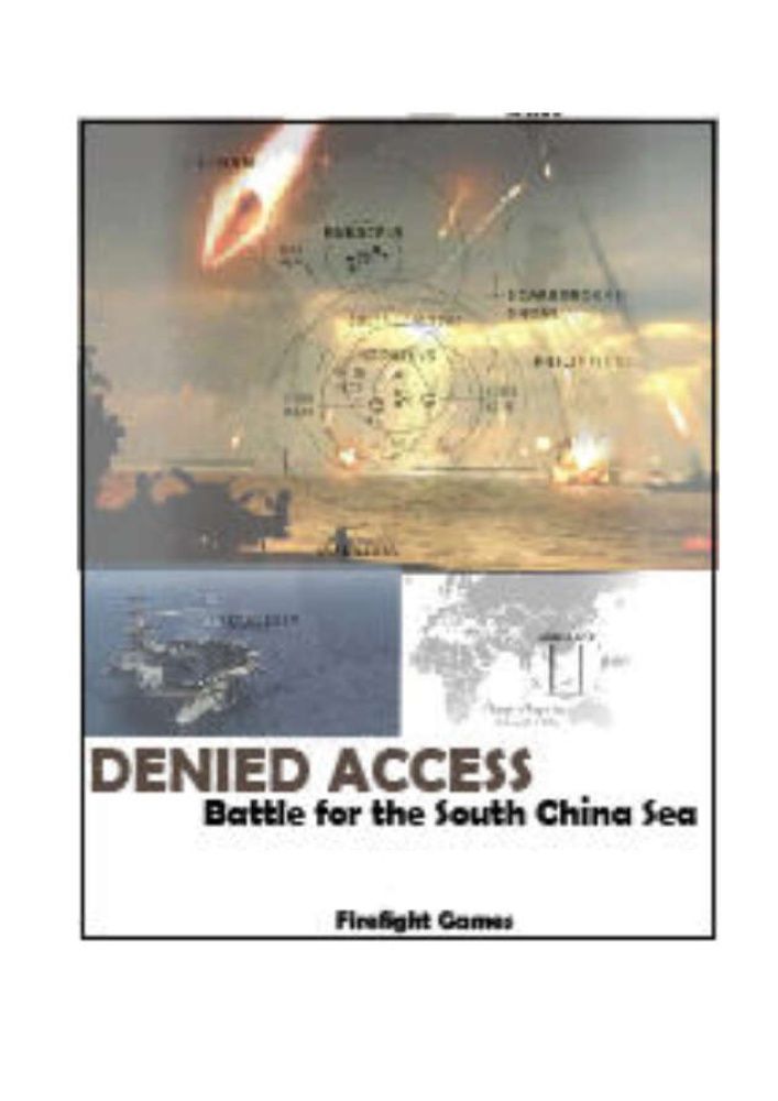 Descrizione: Denied Access covers a probable future conflict for control of the South China Sea in a few years. Since 2014, China has been creating, expanding, its military bases in an area that is part of the Philippine's territorial waters. Most of the world's shipping lanes move through this key area and often is patrolled by the USN. China continues to warn ships entering it and transit at their own risk, as if they own it. By 2021, the Chinese atolls were armed with deadly ASMs and airbases for fighter aircraft. The Chinese warned the USN that their "carrier killer" missiles would sink a flattop. As the game shows via scenarios, the war could ignite quite suddenly because one of these days, the Chinese will fire on a ship ignoring its warnings. The game is tactical with individual carriers and ships, submarines, 30 miles a hex, 4 hr. turns, aircraft units (each represent 4 AC). Aircraft include F-35, F-22, F-18, ECM, Bombers. Detection is key in the game. One 11x17 inch map, charts and tables. —description from the publisher