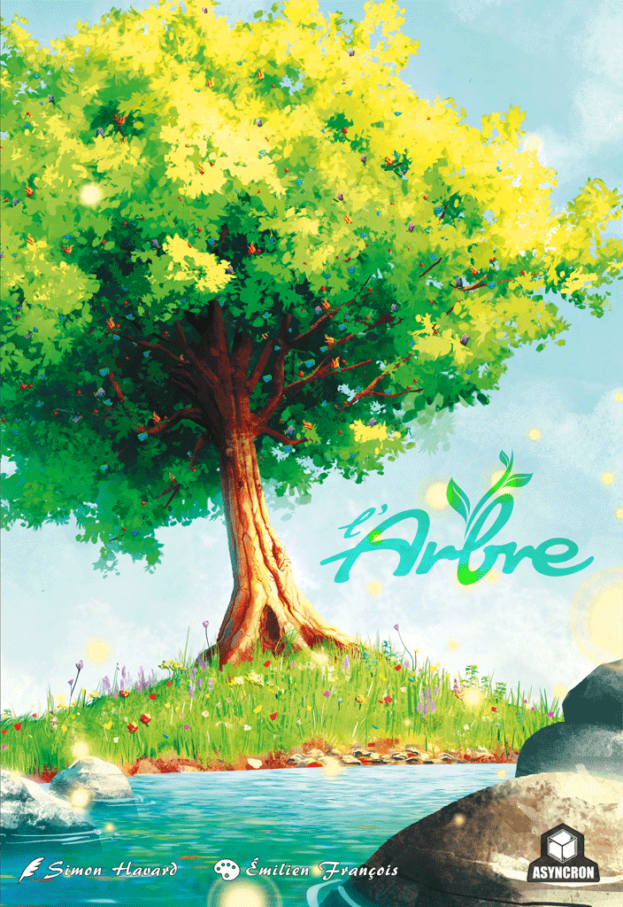 Each turn in L'Arbre, a player either draws cards from the deck or places their tiles on the tree by playing cards from their hand. Each tile represents a tree element (branches, leaves, buds or fruits) with distinct rules for placement. The first player to have exhaust their tiles wins.