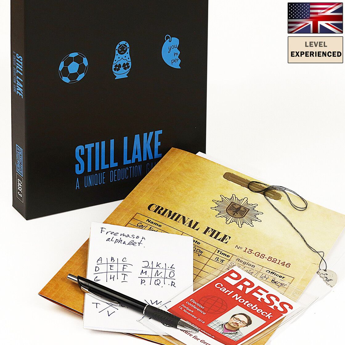Descrizione: Stillsee is a detective game in which you get a set of evidence and need to decide who is the criminal. You get a set of physical objects in combination with digital parts and use them for the investigation. At the end of the process, players need to enter the name of the criminal and it will be validated if it's correct. It's also possible to get hints that will help you find the right solution.