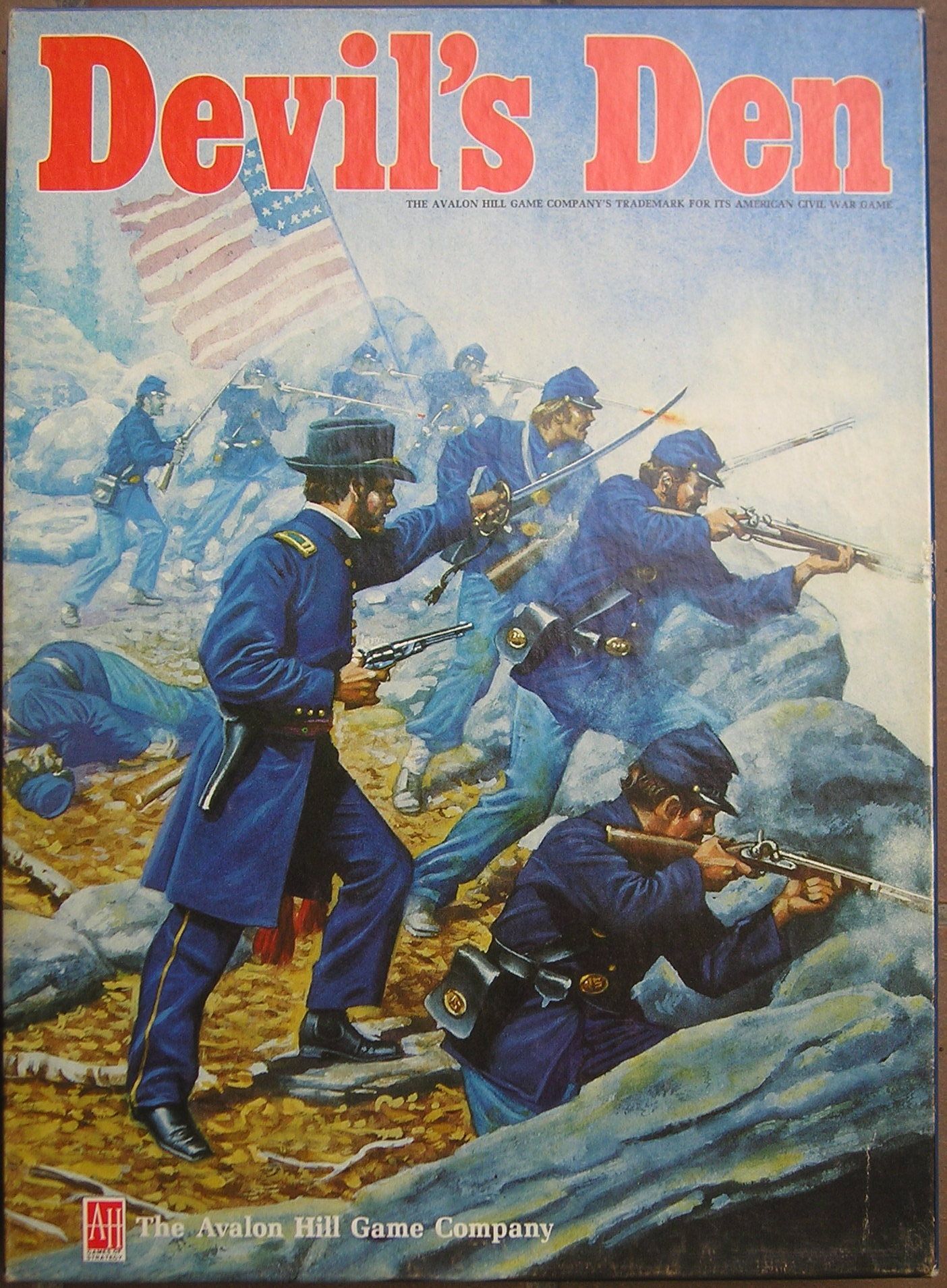 Descrizione: "Devil's Den: Hood's assault at Gettysburg" is a company/battalion level wargame simulation of the Confederate assaults against the Union positions at Devil's Den and Little Round Top on the second day of the Battle of Gettysburg.