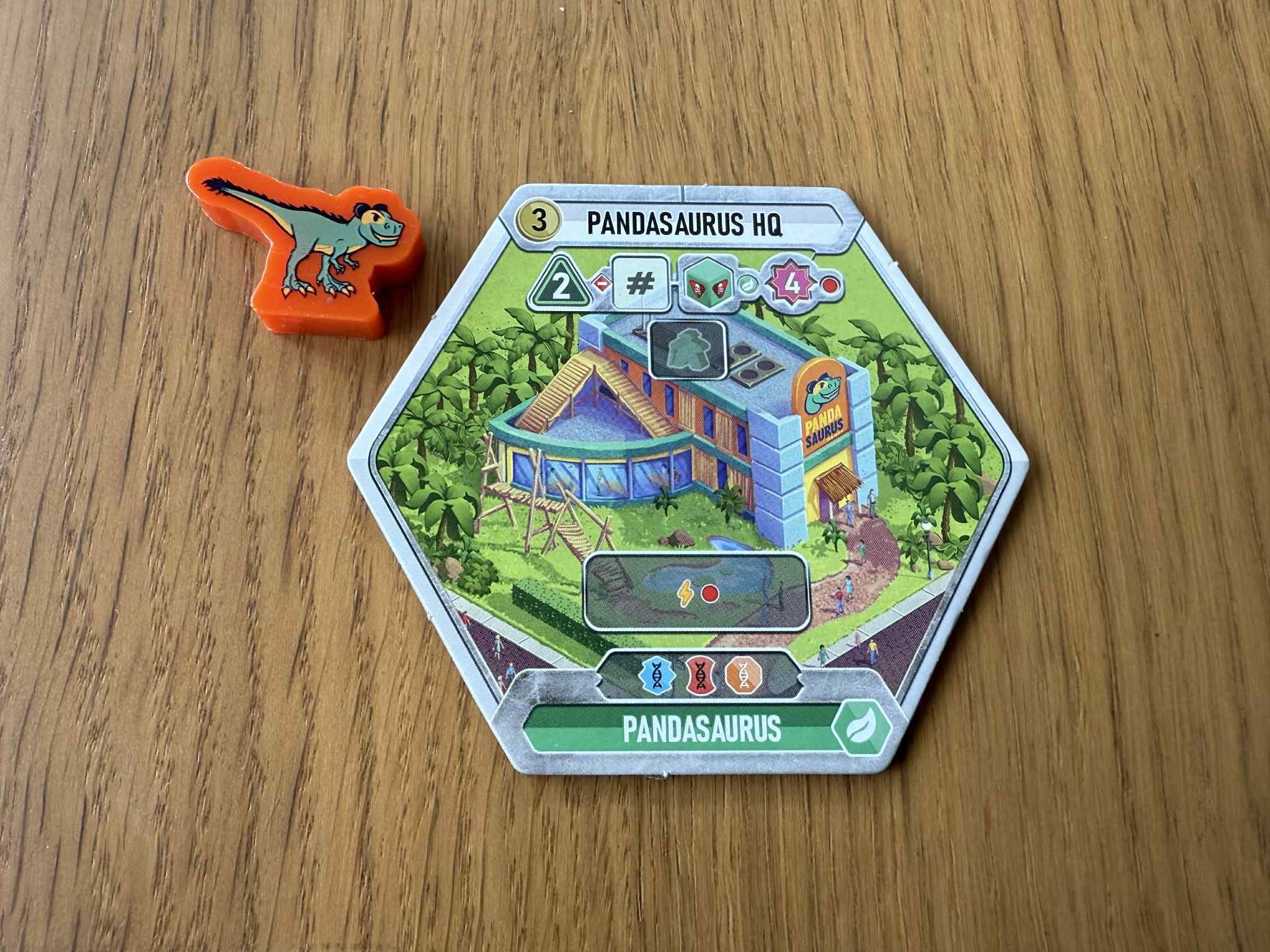 Includes the Pandasaurus HQ 'Special Building' tile and the Orange Pandasaurus Meeple to go with it.